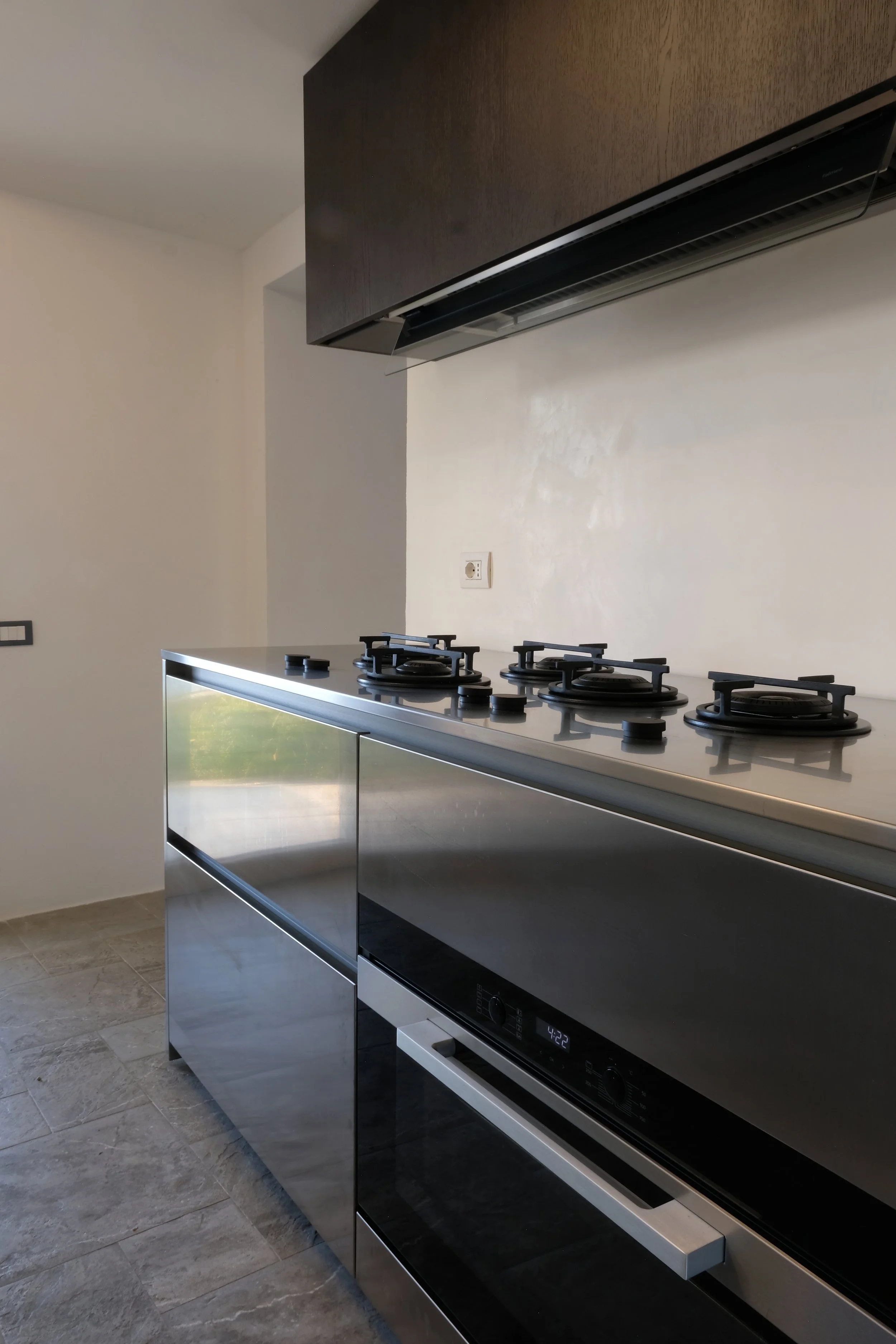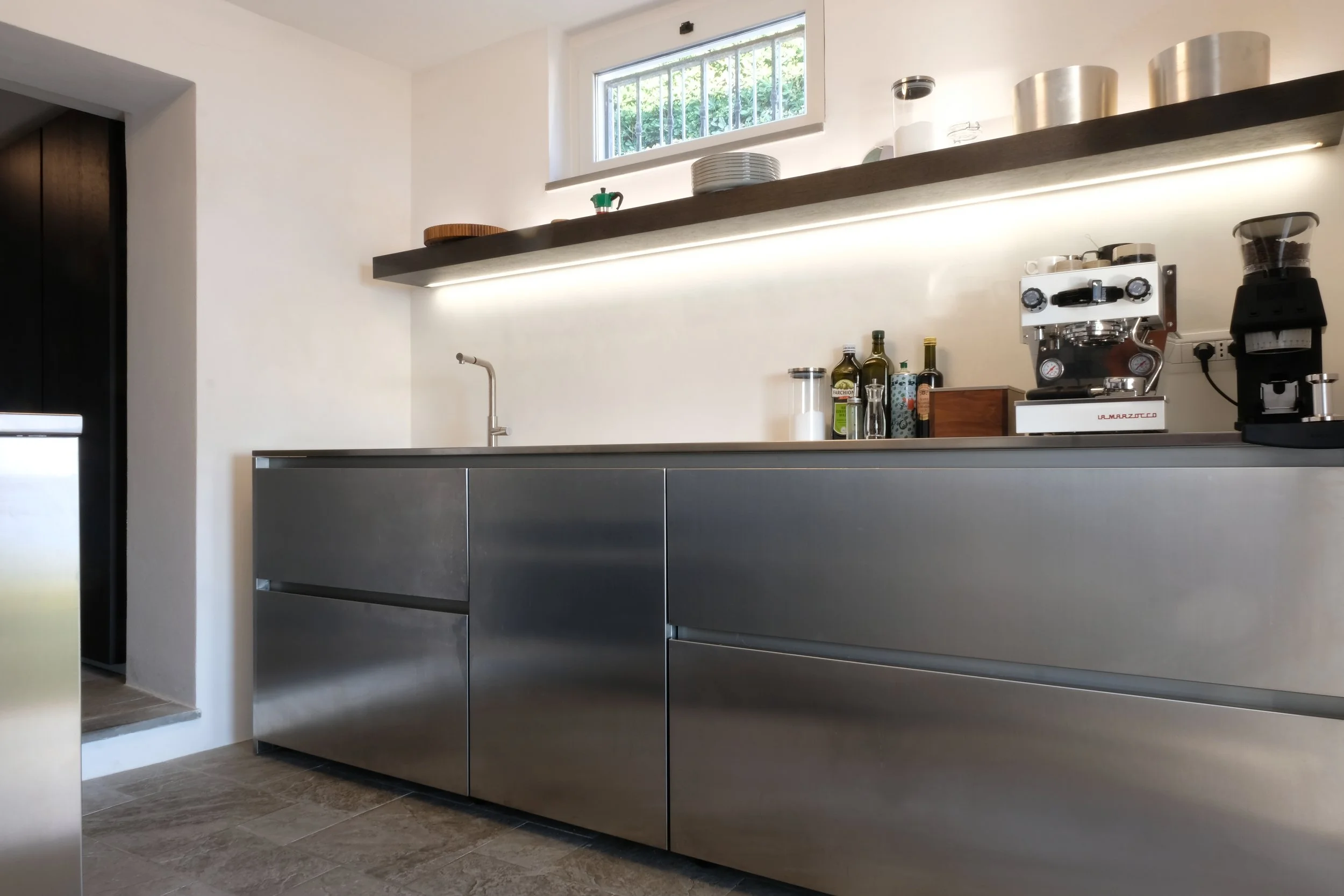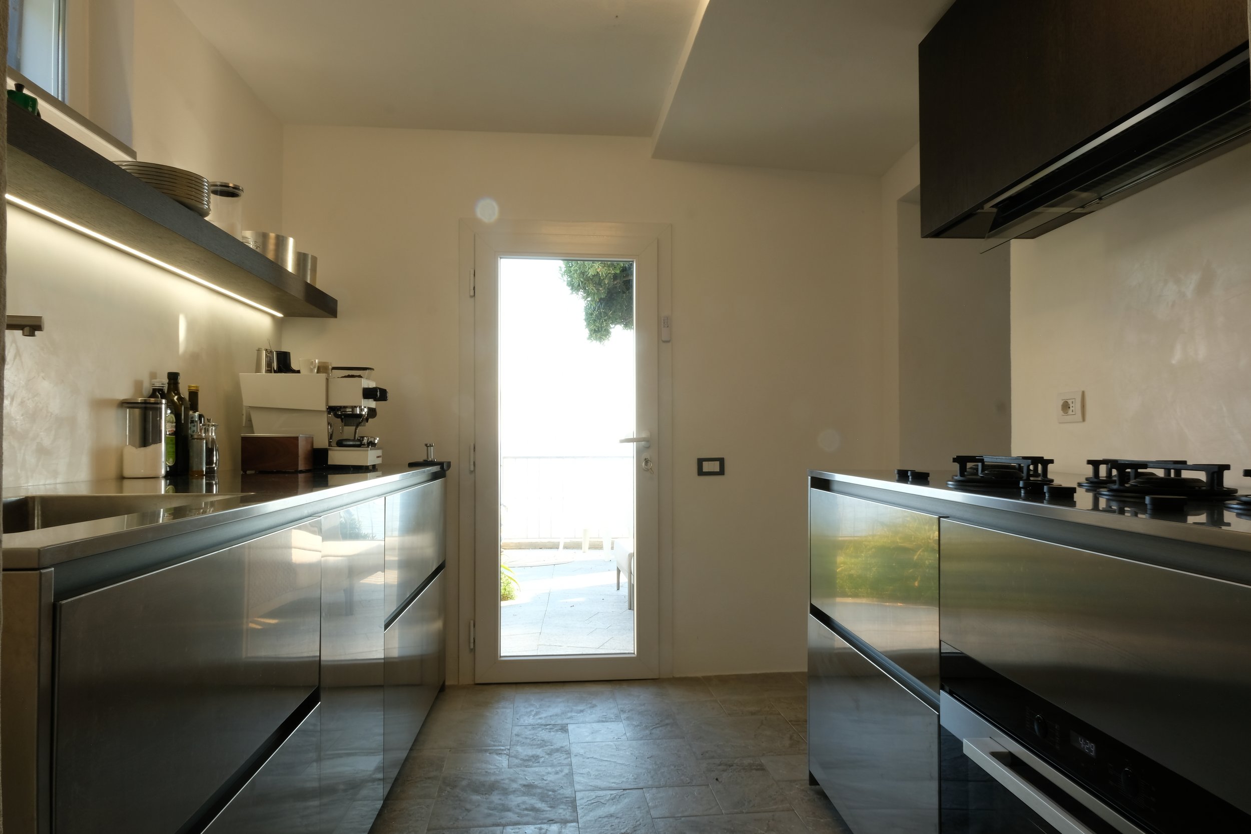 Nydelig kjøkken utført i rustfritt stål. Kjøkken er produsert i Venezia utfra våres ønsker.