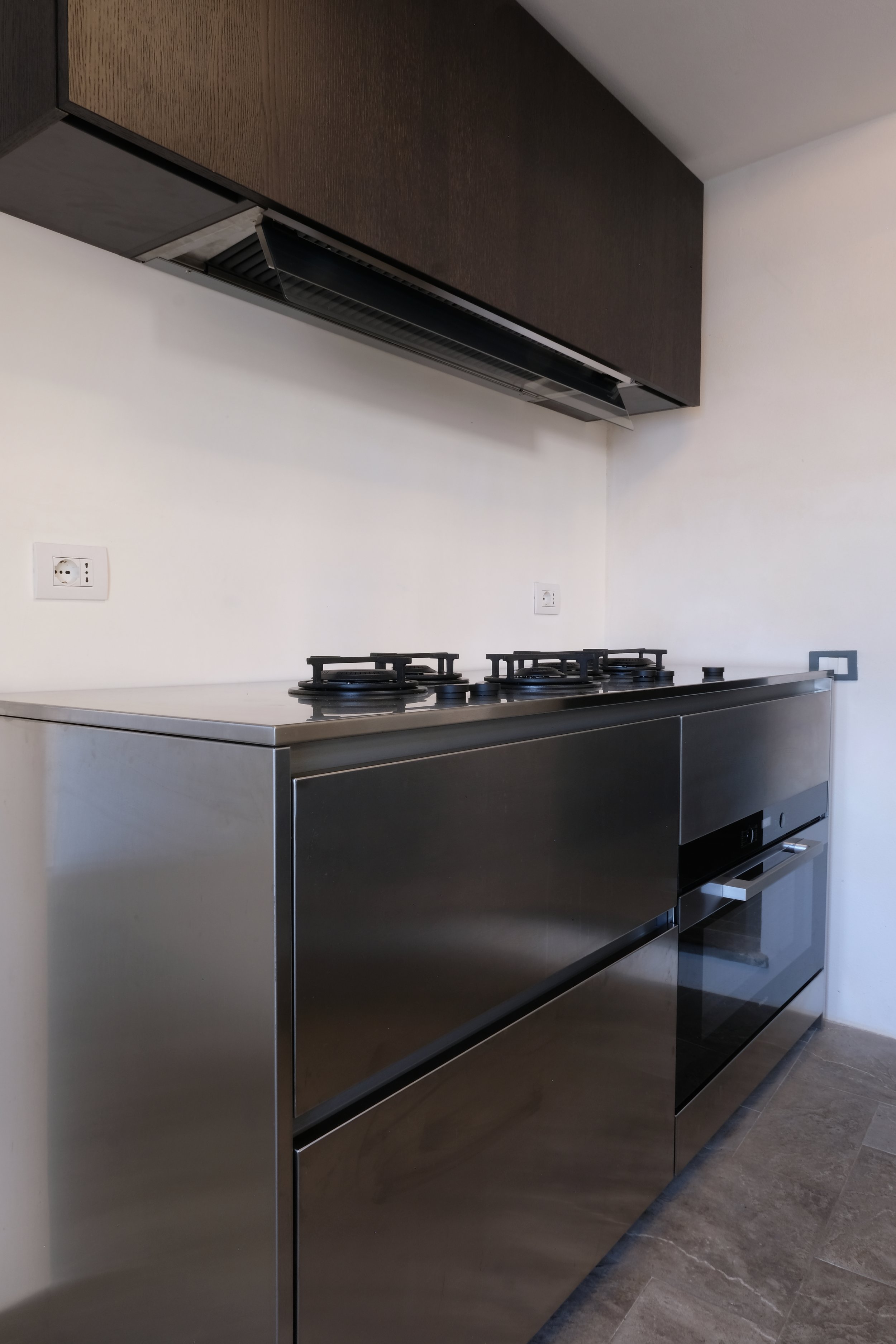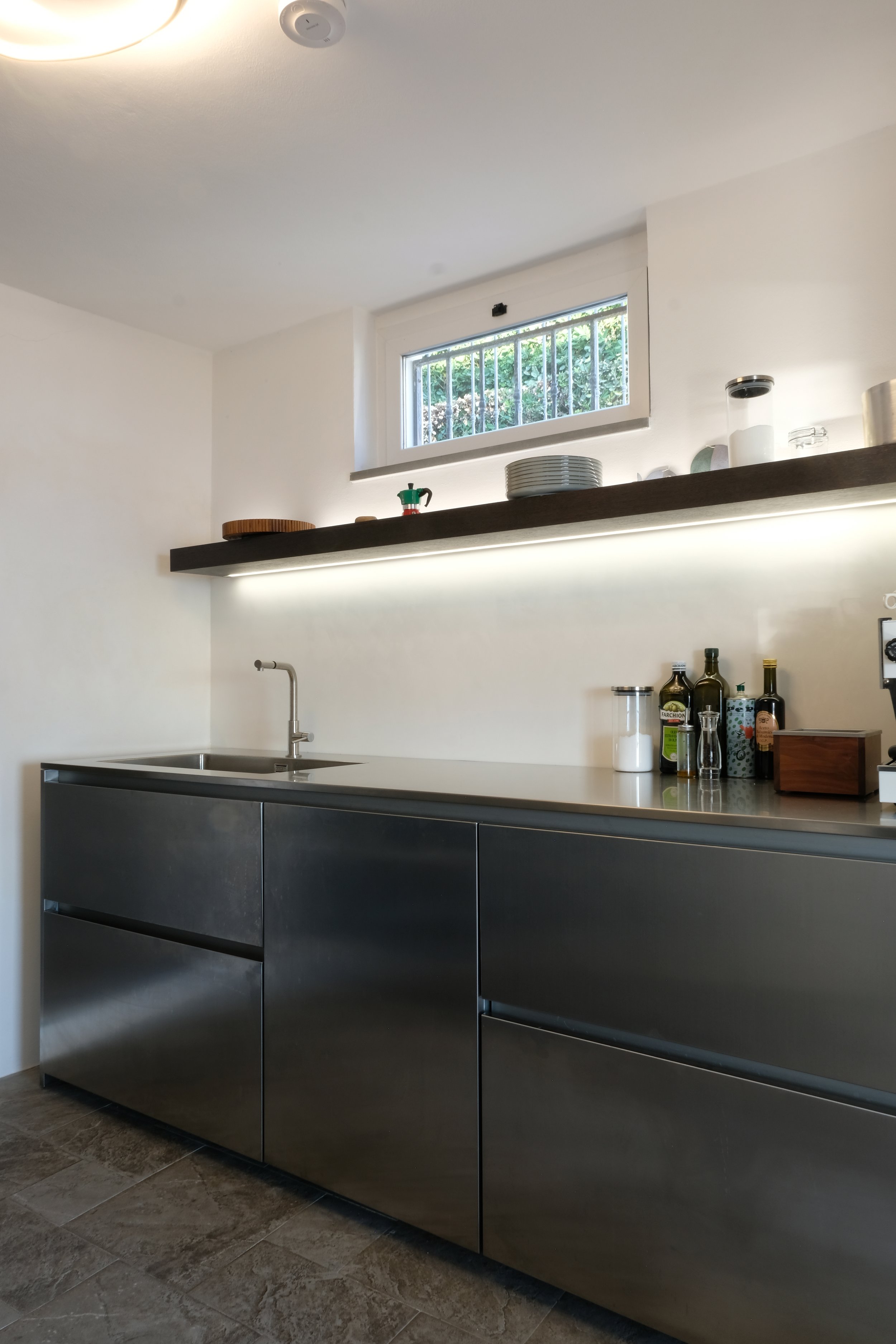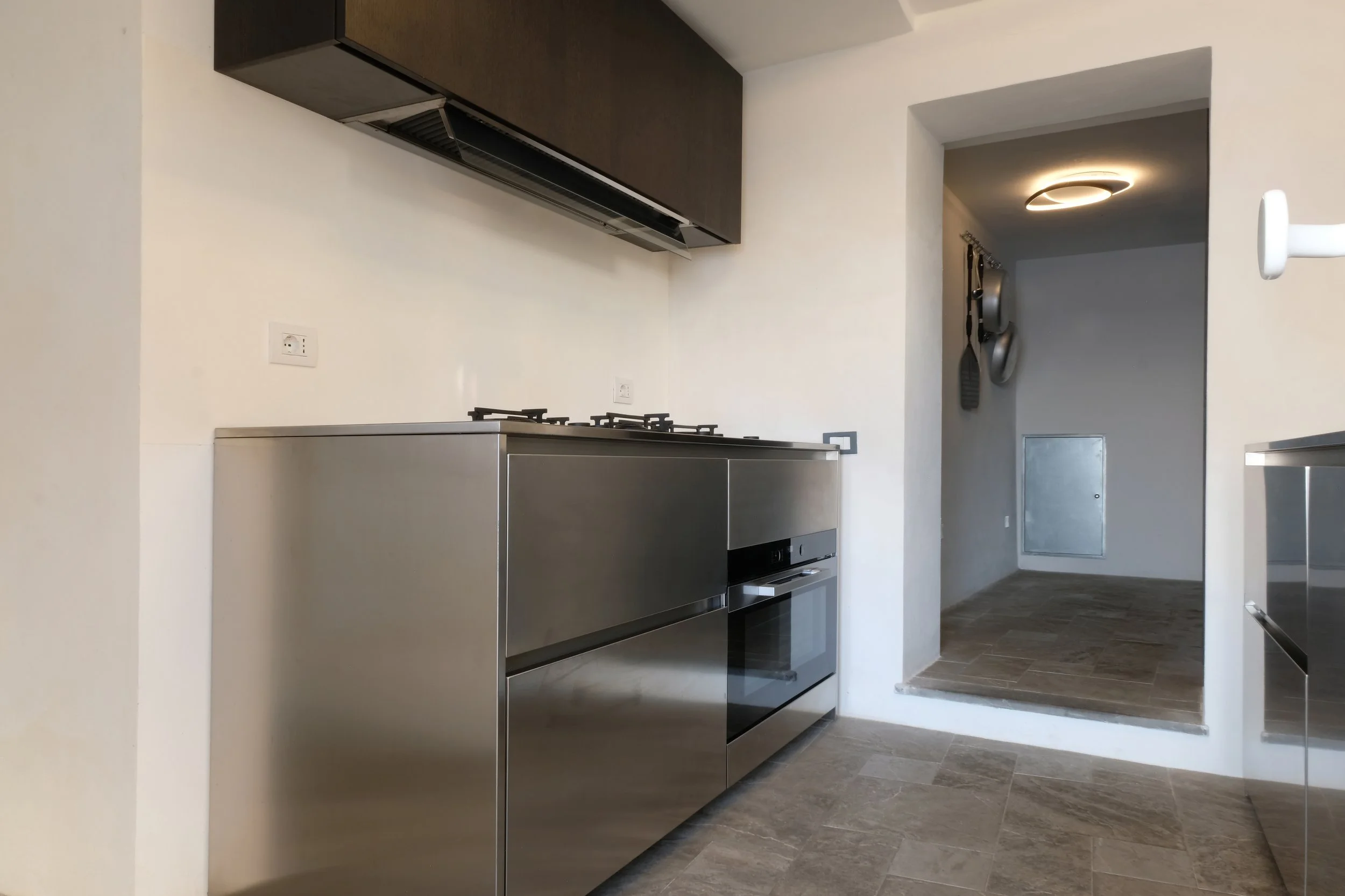 Nydelig kjøkken utført i rustfritt stål. Kjøkken er produsert i Venezia utfra våres ønsker.
