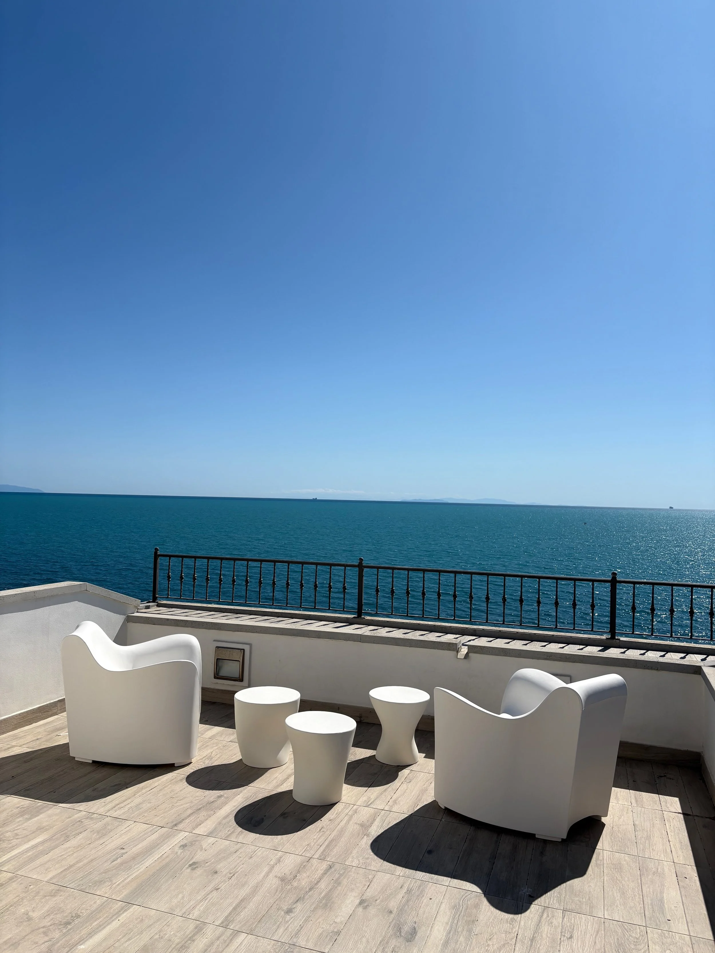 Dette er drømmen, invitere venner til sammen å tilberede de store måltider, med Middelhavet foran.