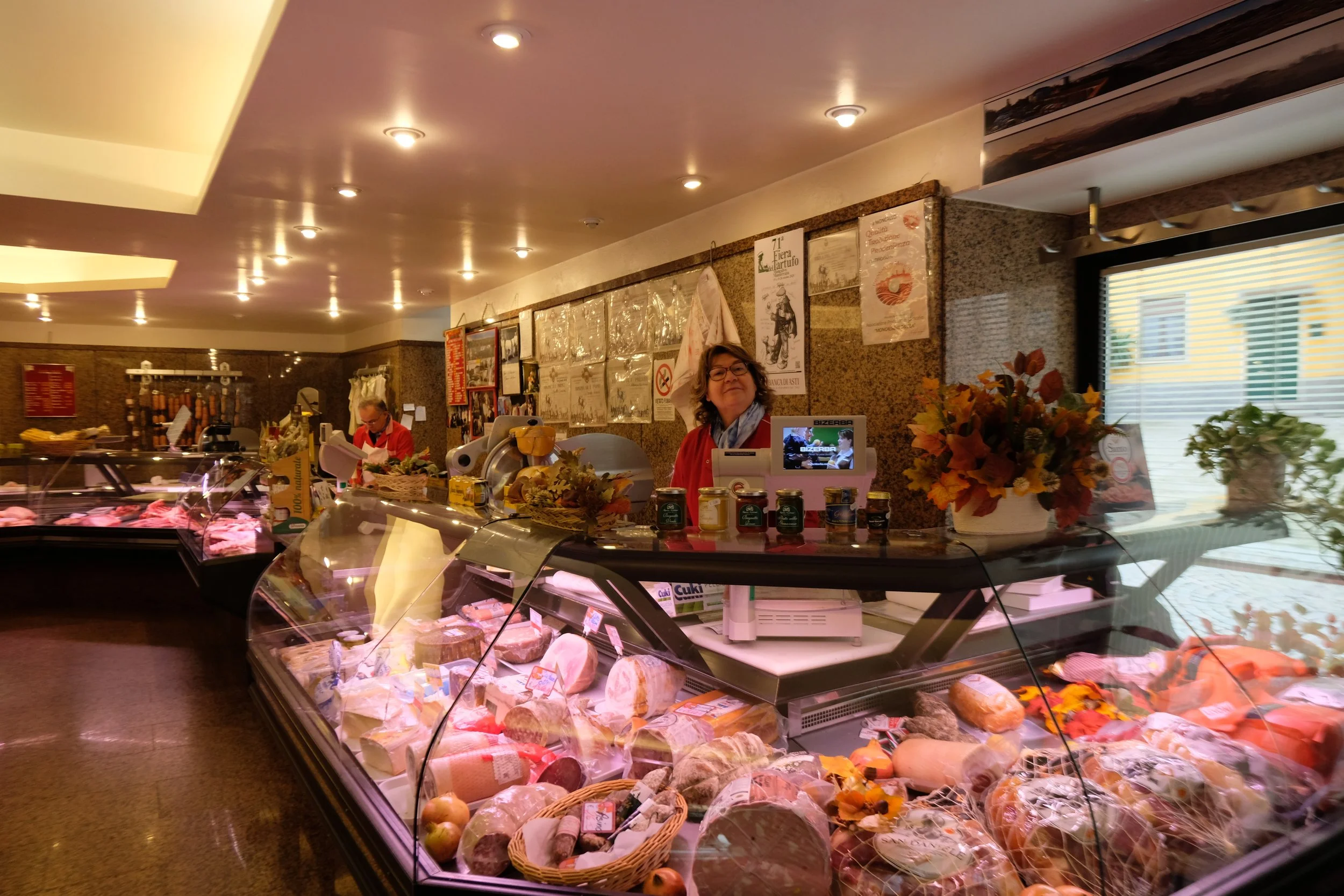 I Moncalvo så finner vi et rikt utvalg av butikker som selger fersk mat, slaktere, bakerier osv.
