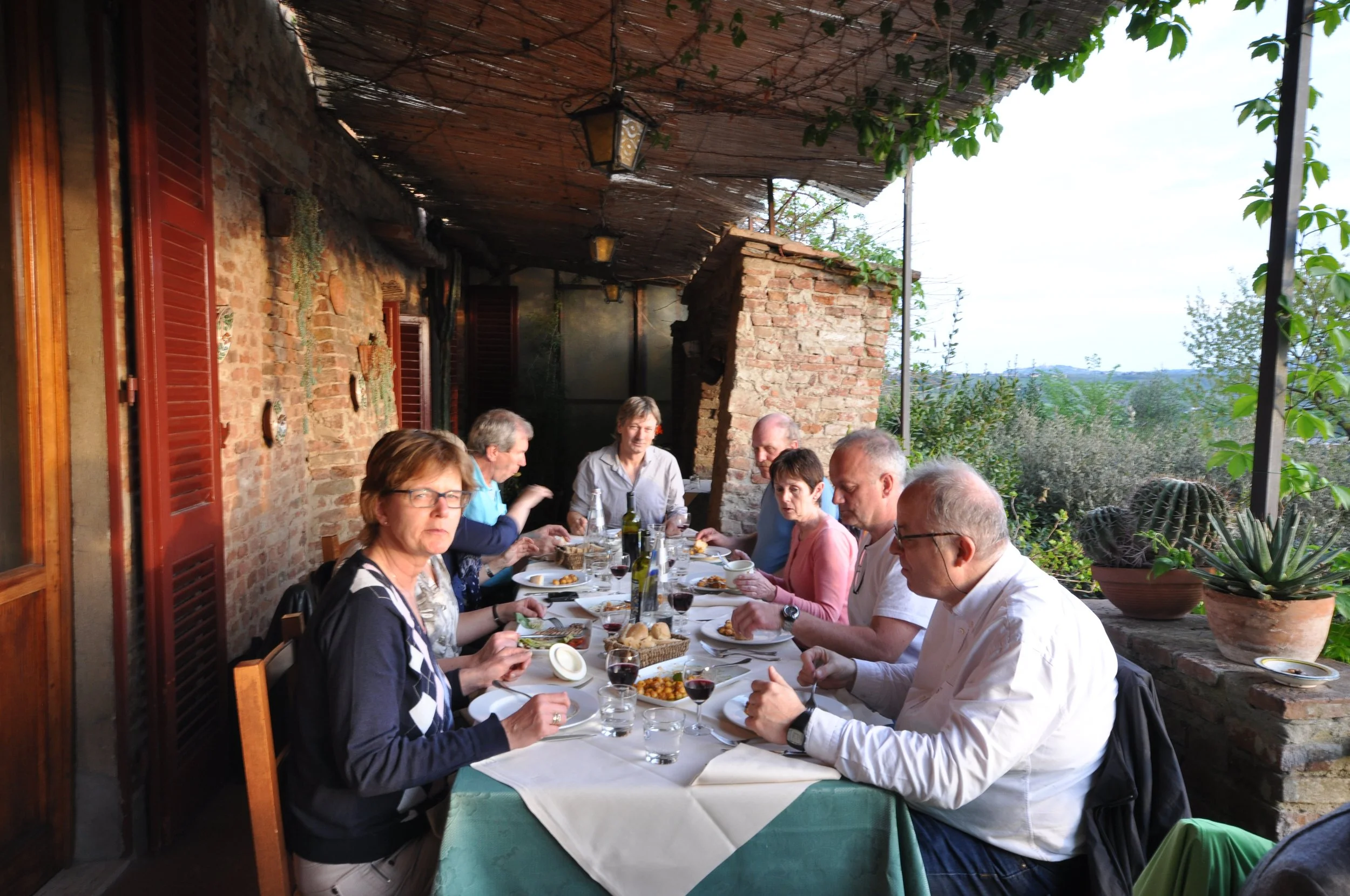 En vennegjeng som bor på ulike steder møtes i Toscana