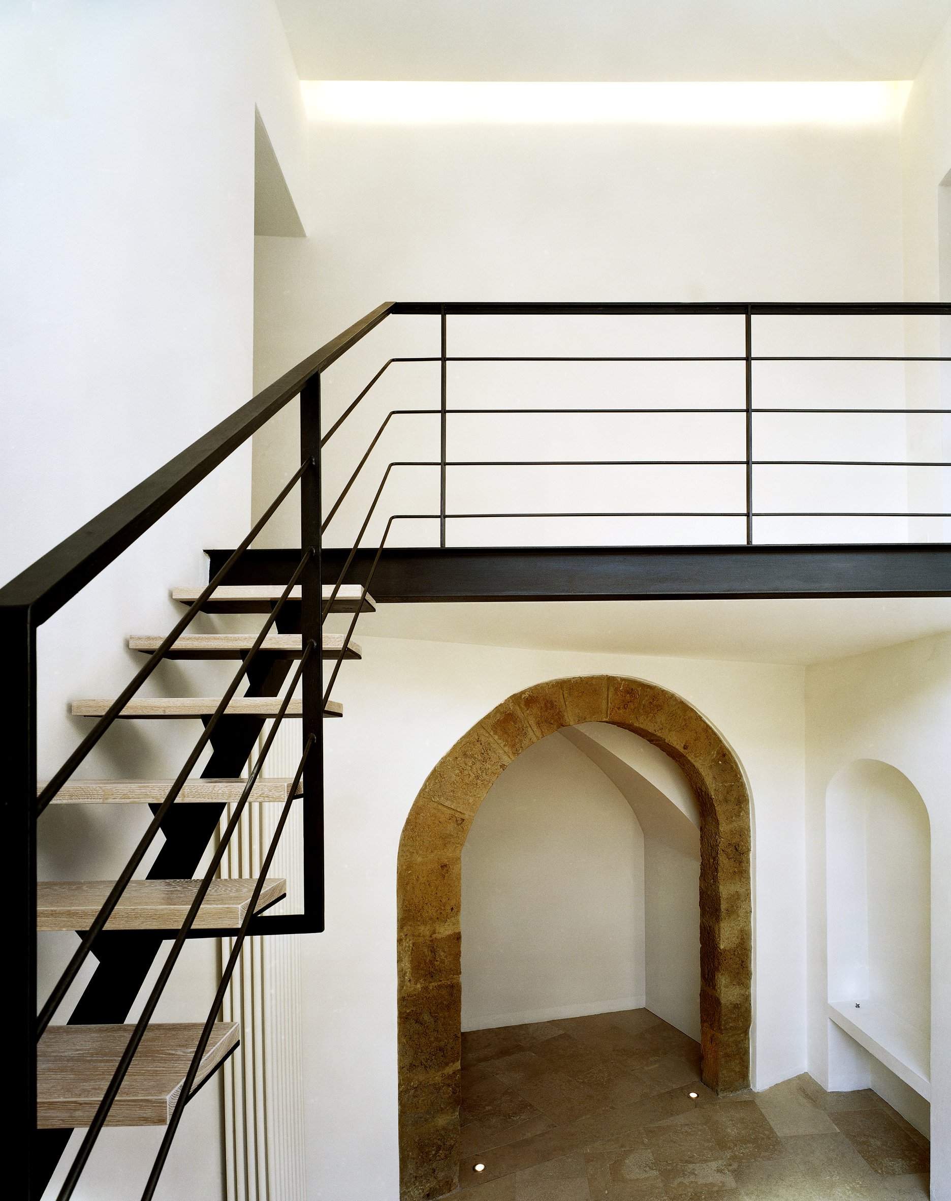 Vinduene er innrammet av små profiler i malt jern, som gjør at inntrykket blir nesten hundre prosent glass – og som understøtter opprinneligheten i arkitekturen.