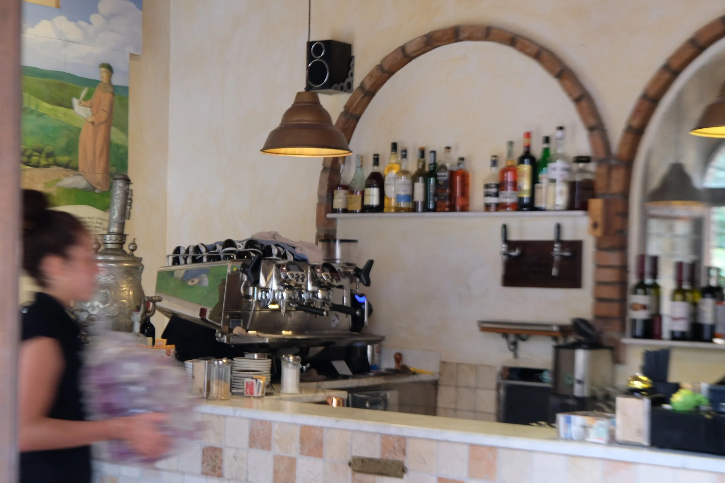 Fra en av kafeene i Certaldo Basso.