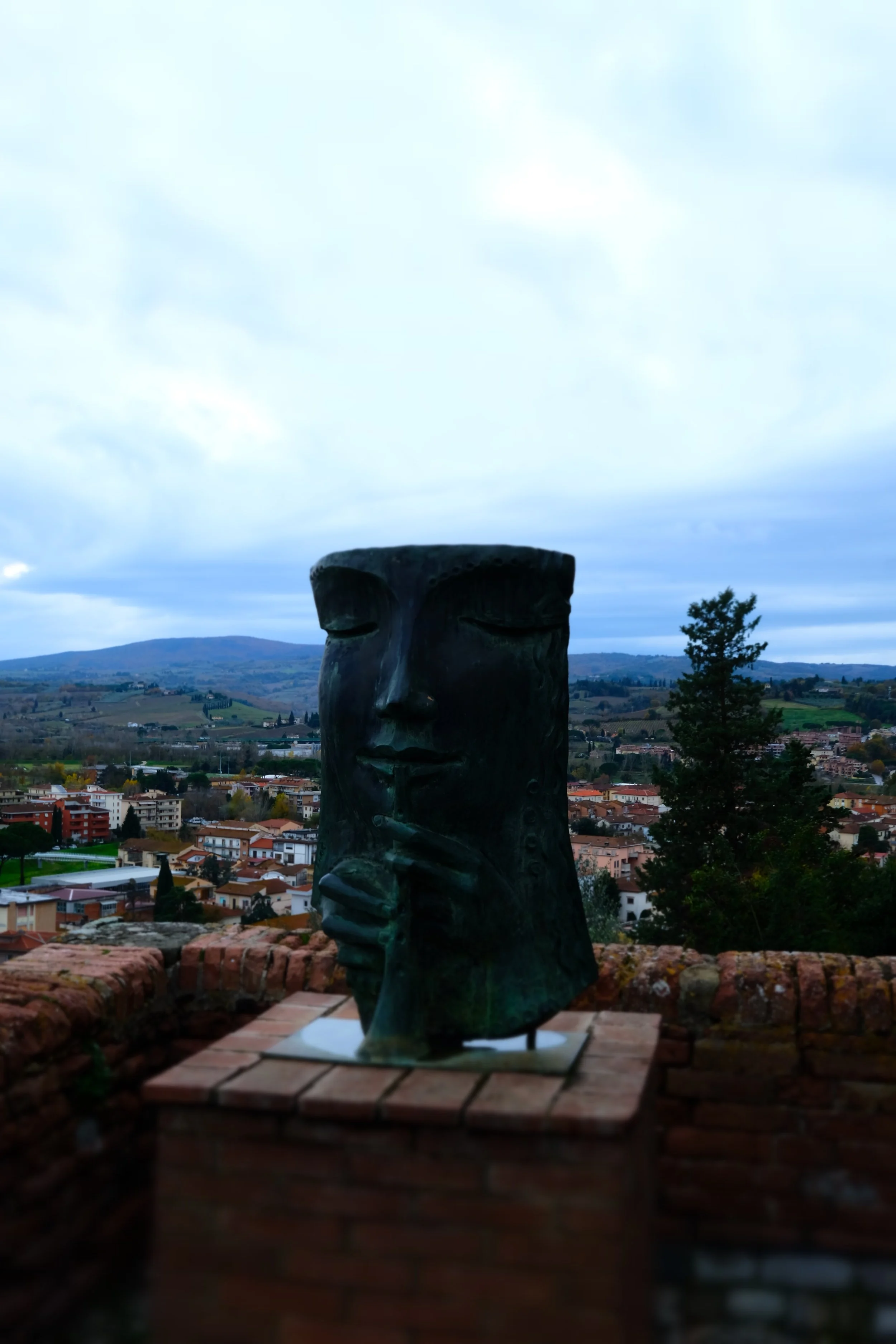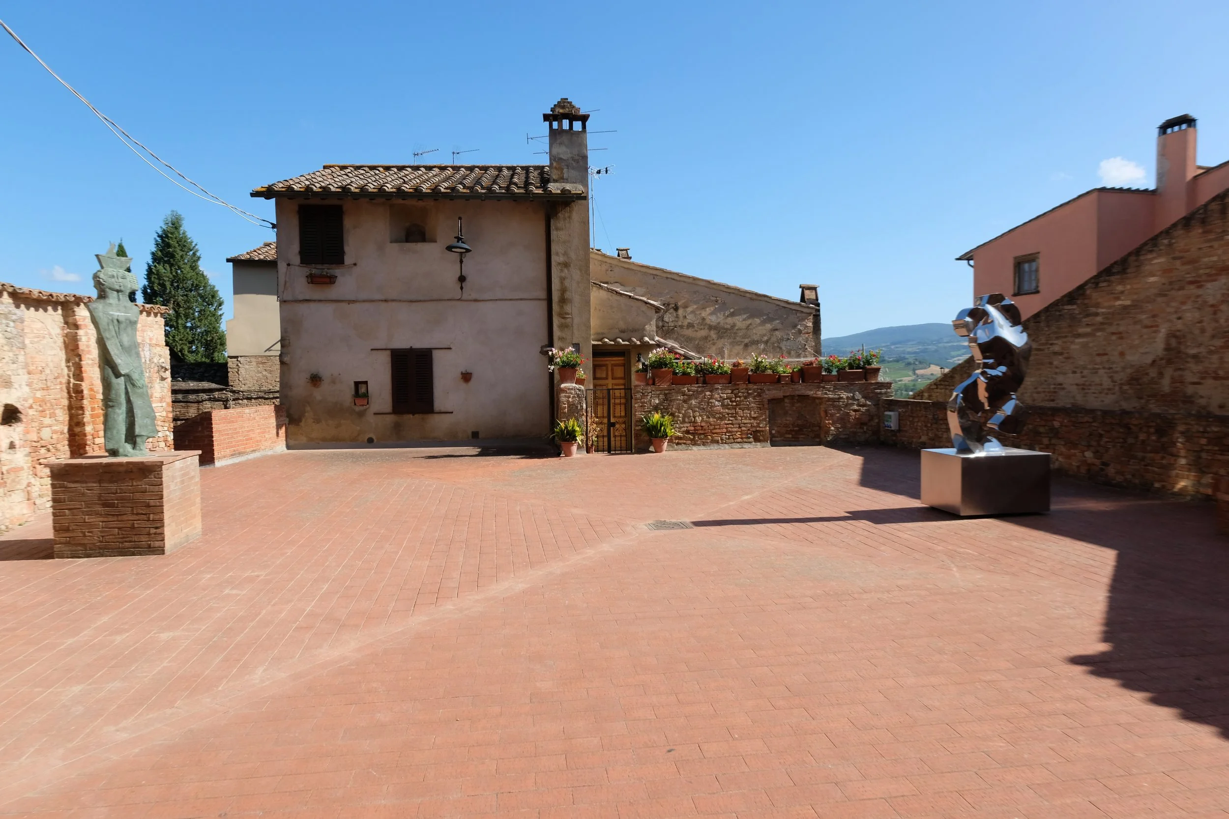En av piazzaene oppe i Certaldo Alto med kunst installasjoner.