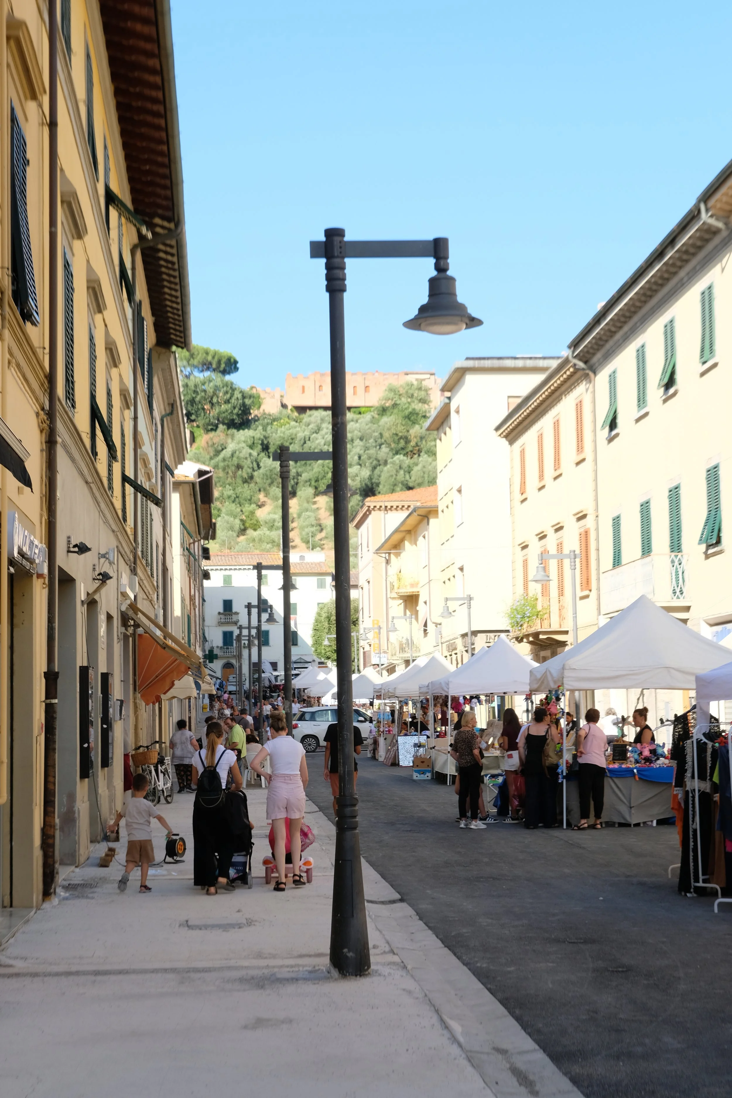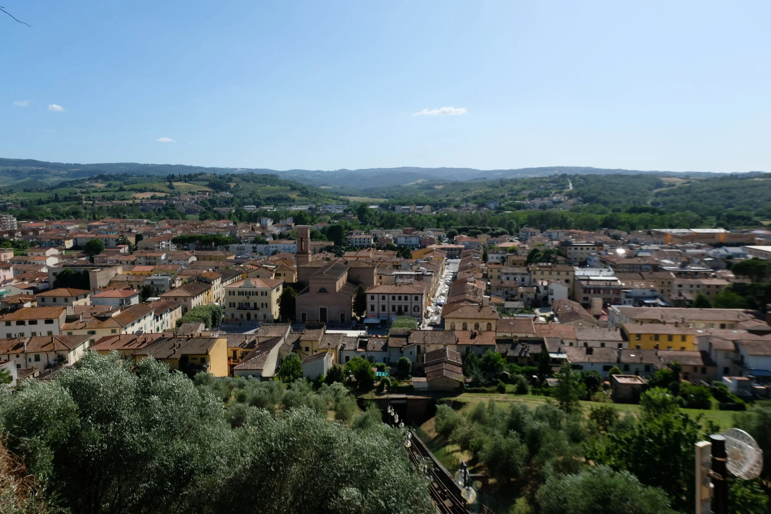 Nede i byen så har vi store piazzaer med markeder og grønne parker. Vi har togstasjon som ligger langs linjen Empoli-Siena. Her kan ta enkelt toget til Siena, Empoli, Pisa og Firenze. Moderne butikker, flere bakerier, slaktere, restauranter og alt annet.