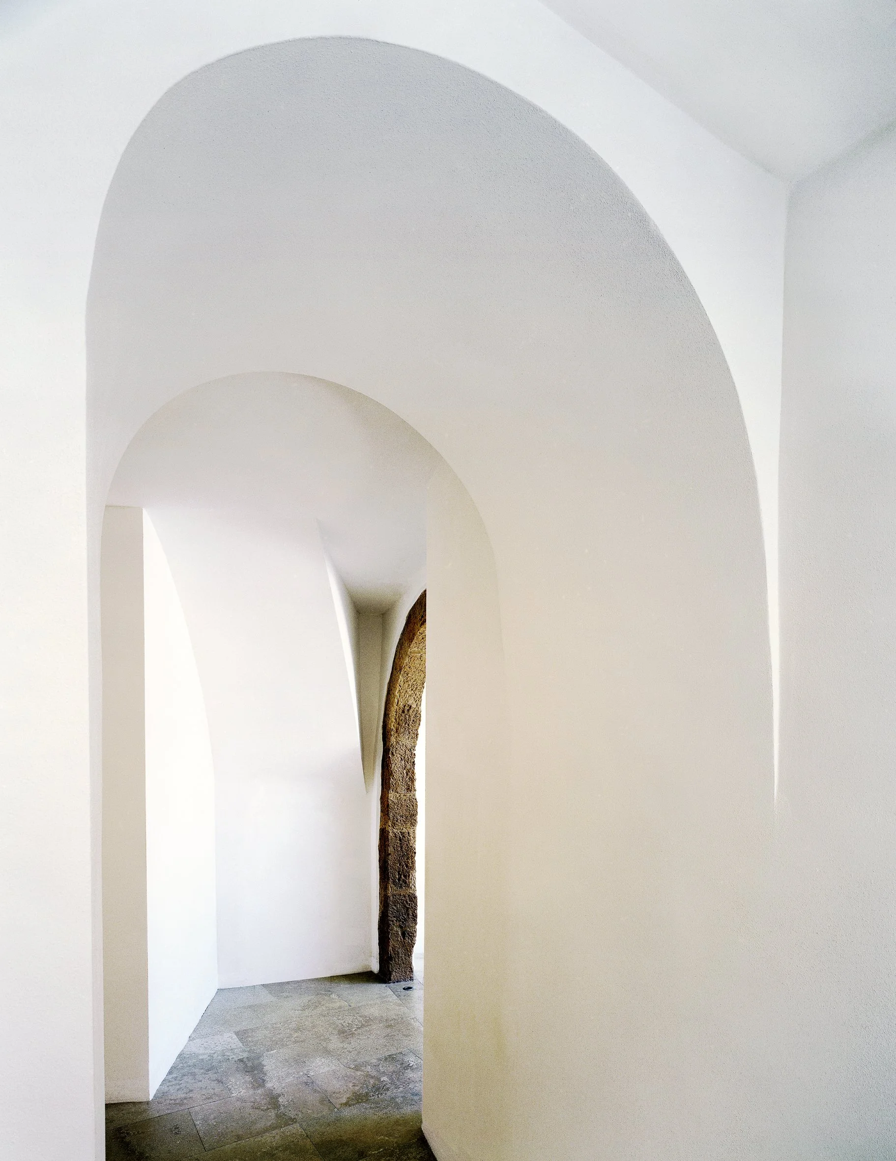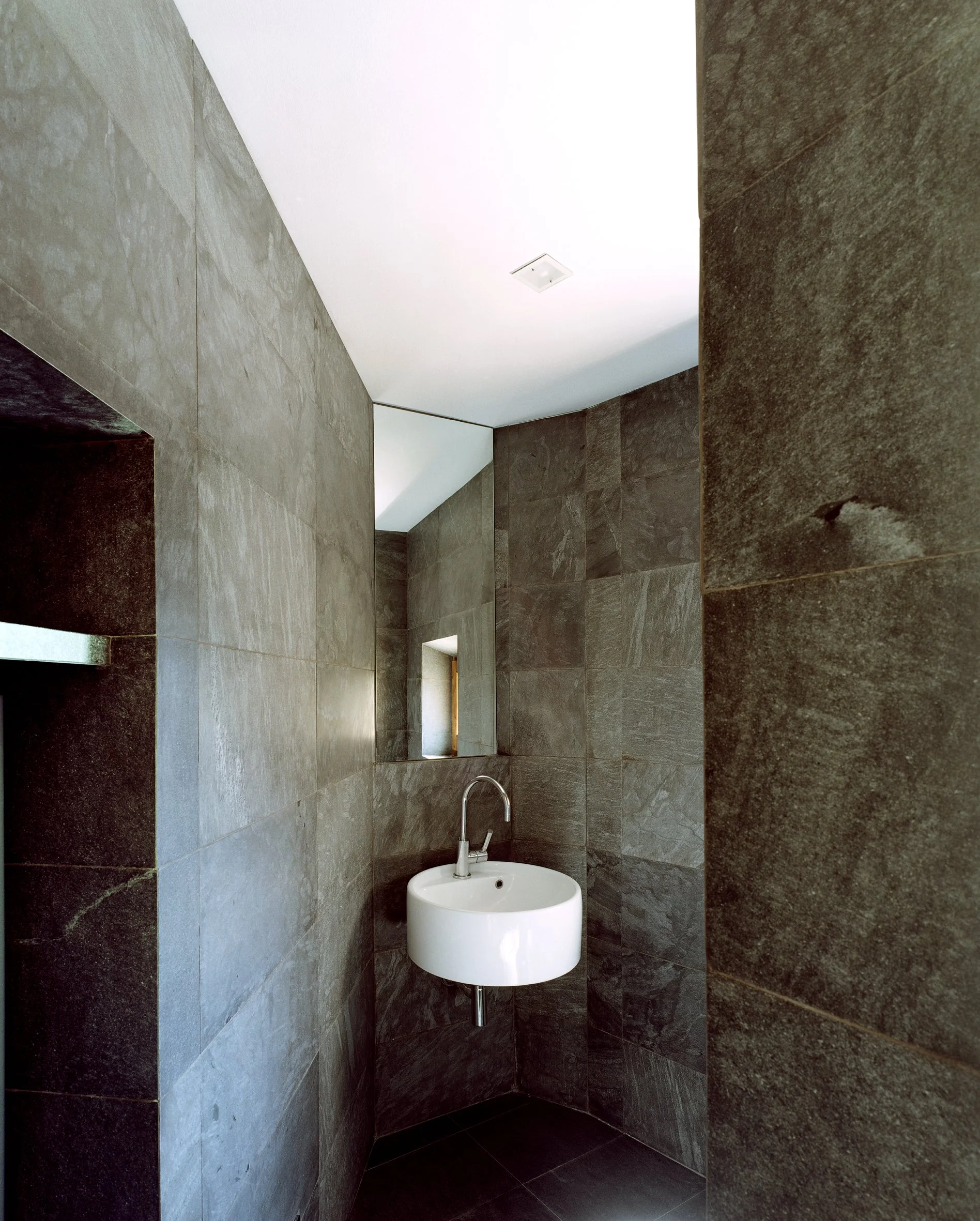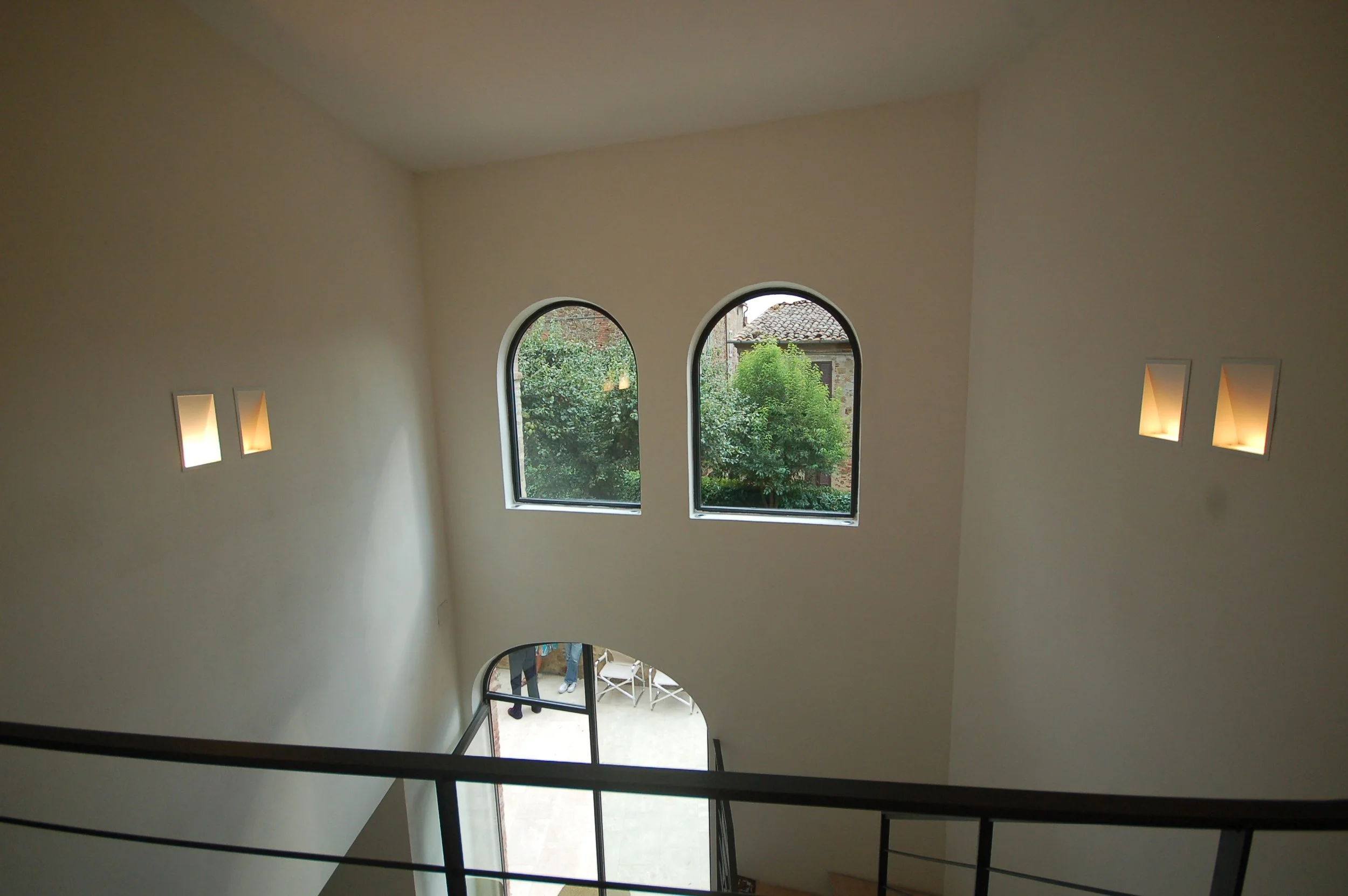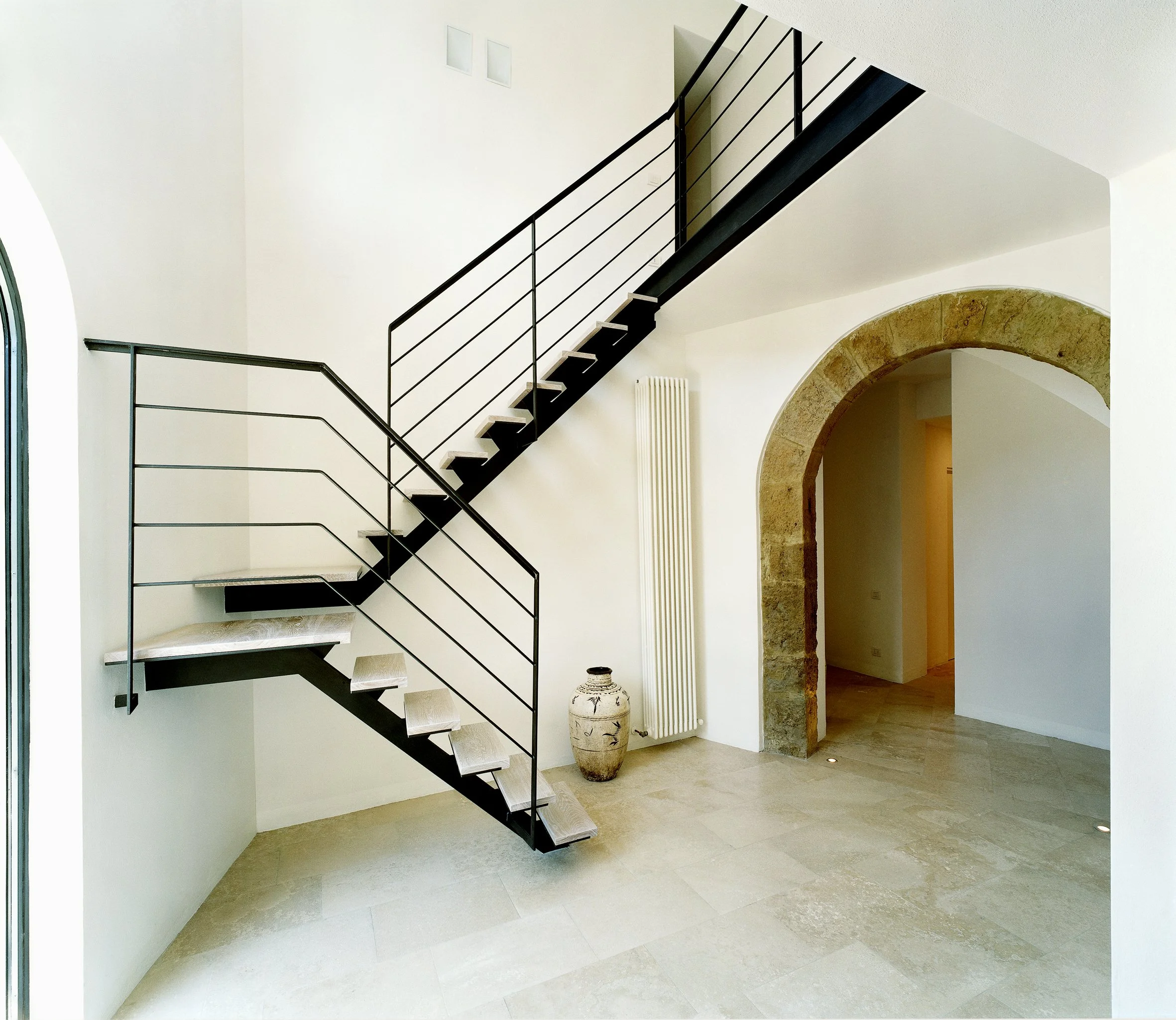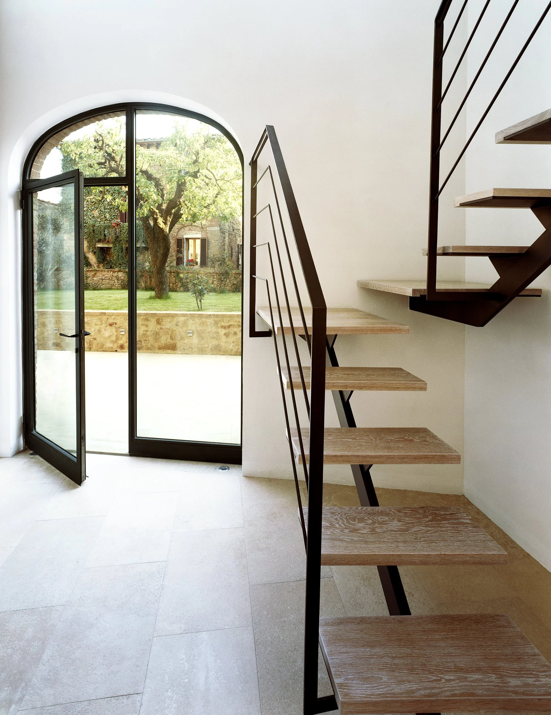 Vinduene er innrammet av små profiler i malt jern, som gjør at inntrykket blir nesten hundre prosent glass – og som understøtter opprinneligheten i arkitekturen.