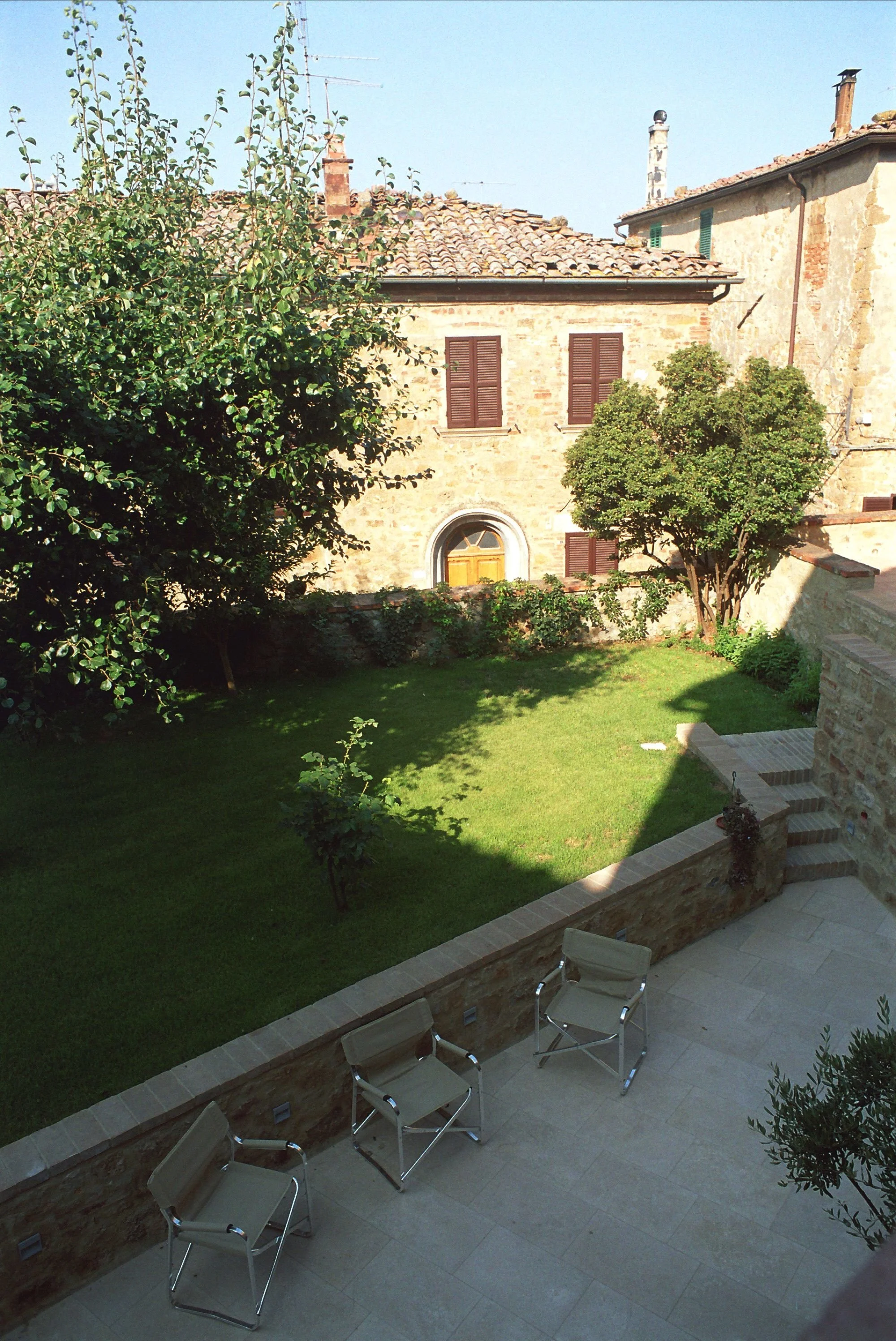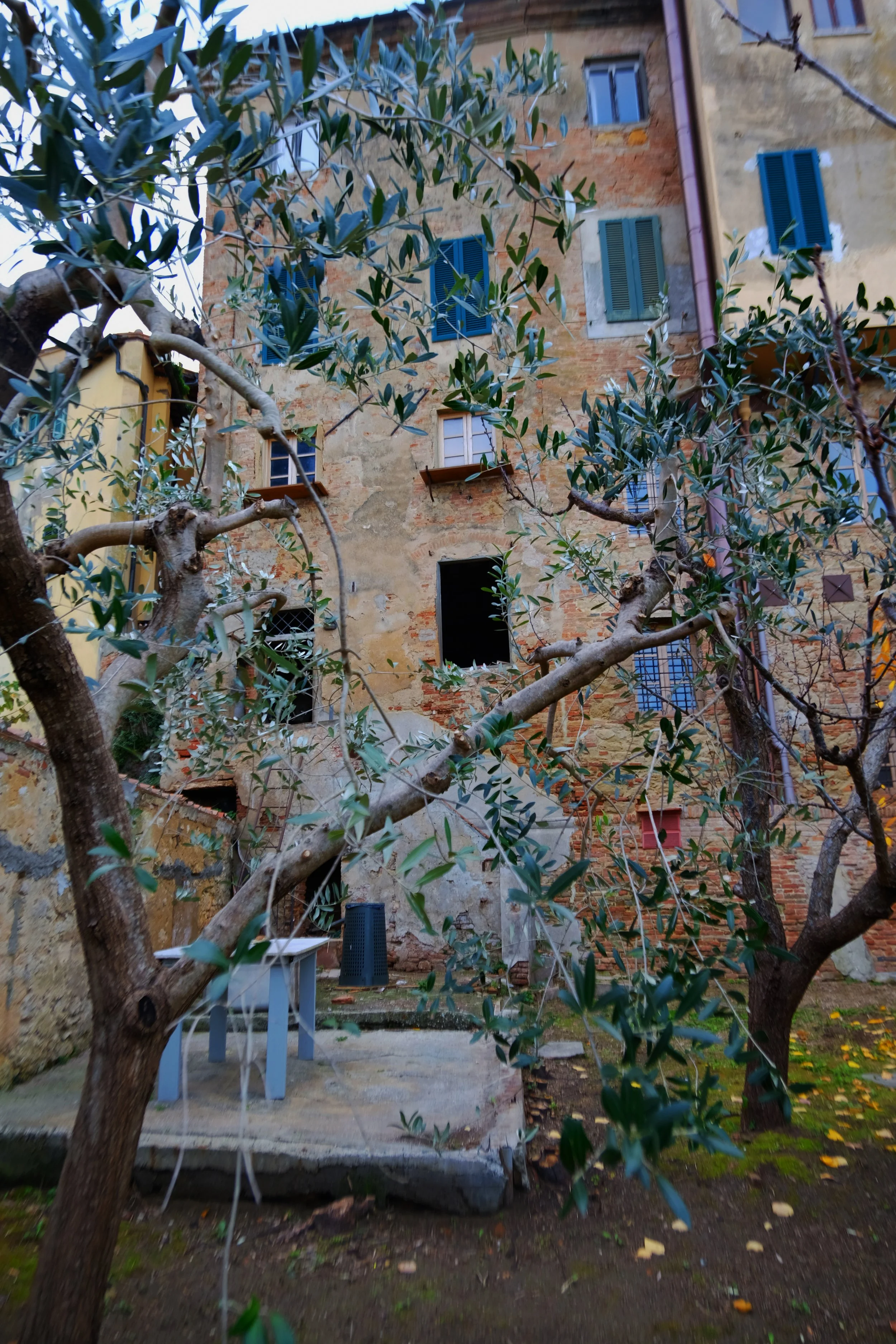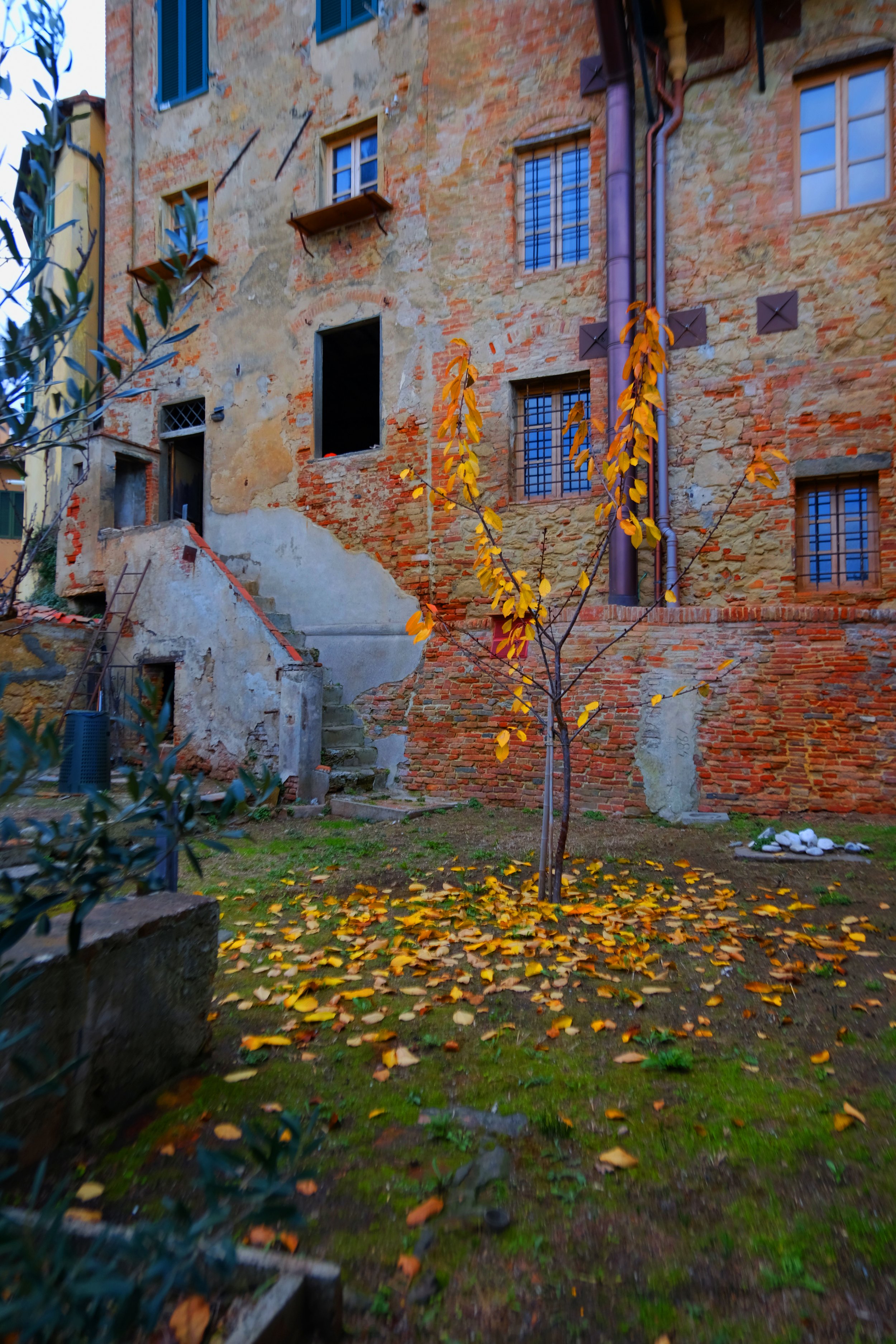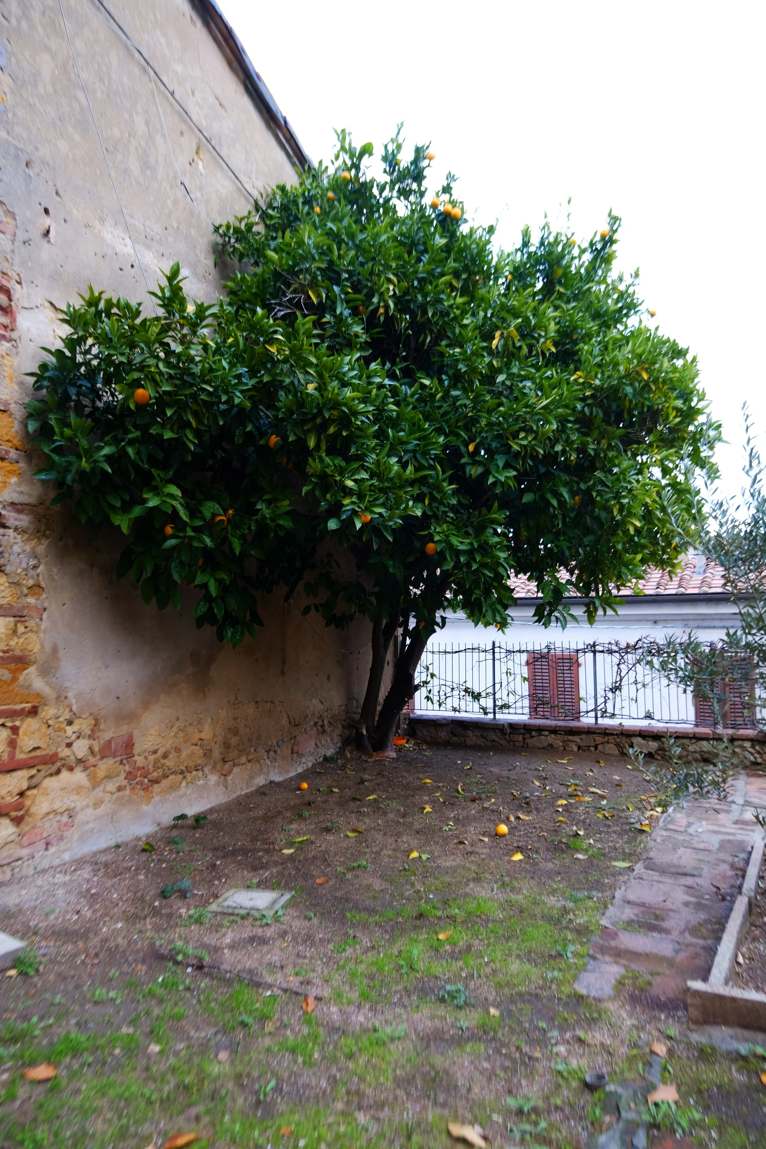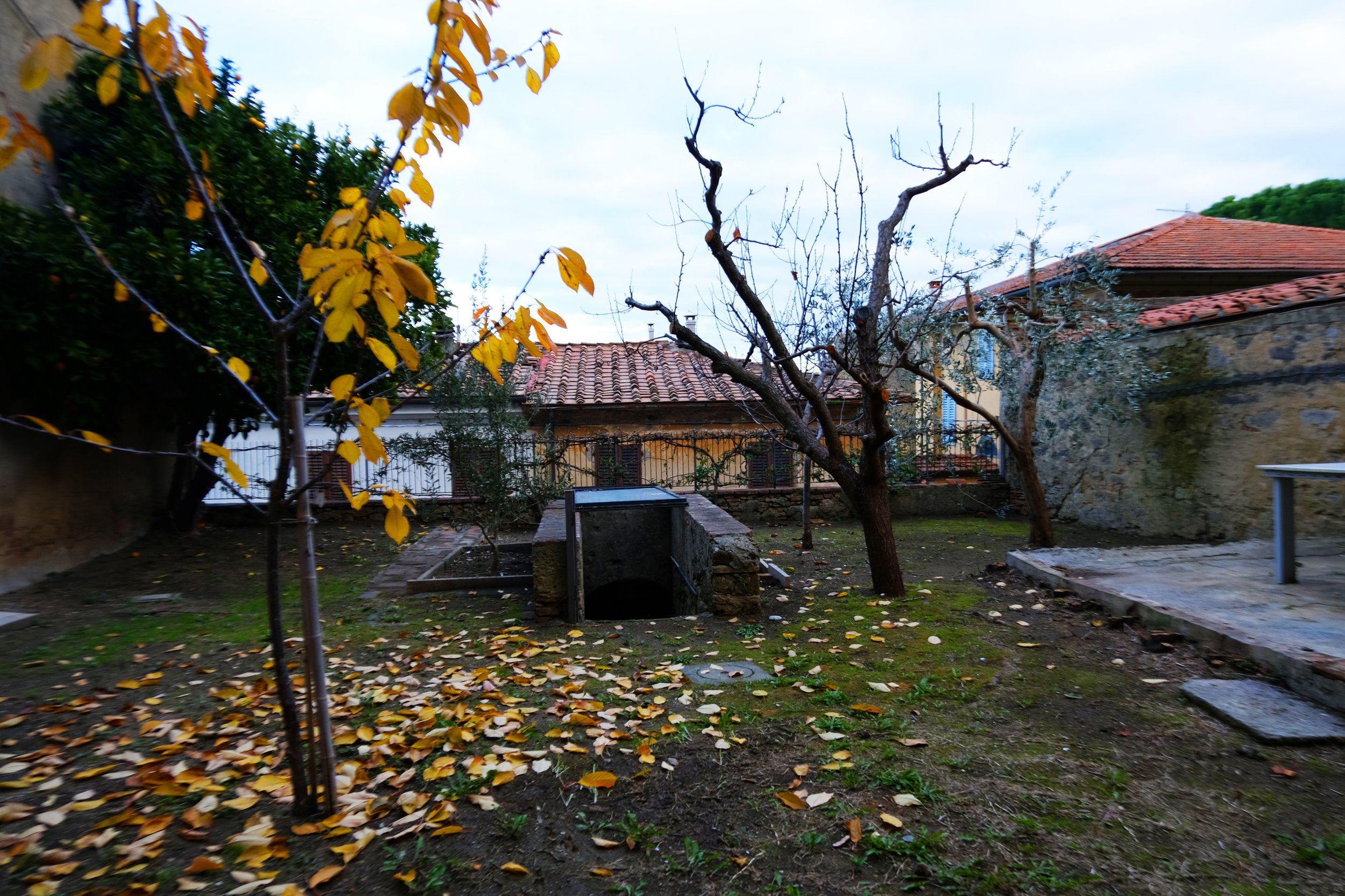 Samme måte som vår eiendom i Lari, så er hagen lagt inn imellom gamle hus.