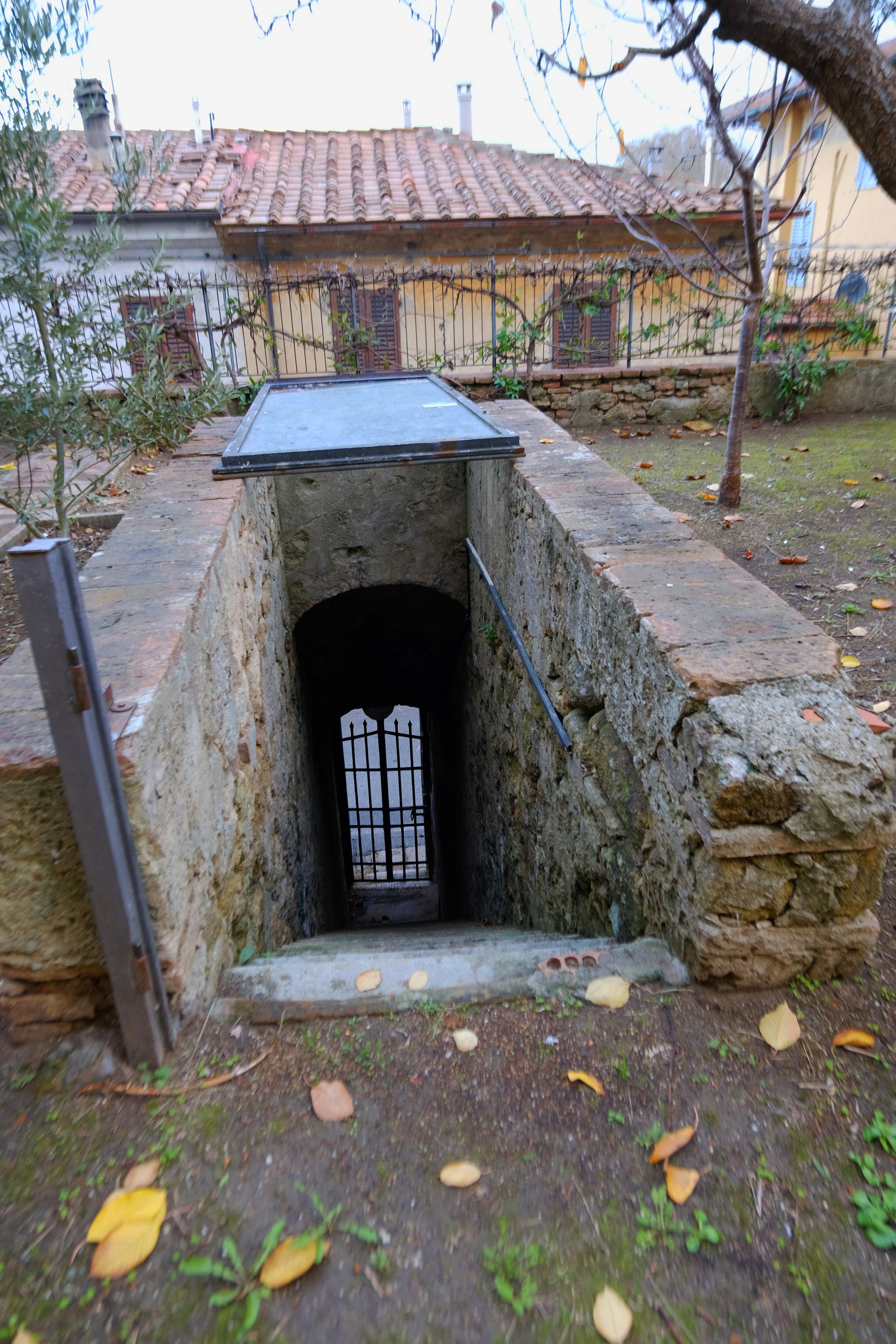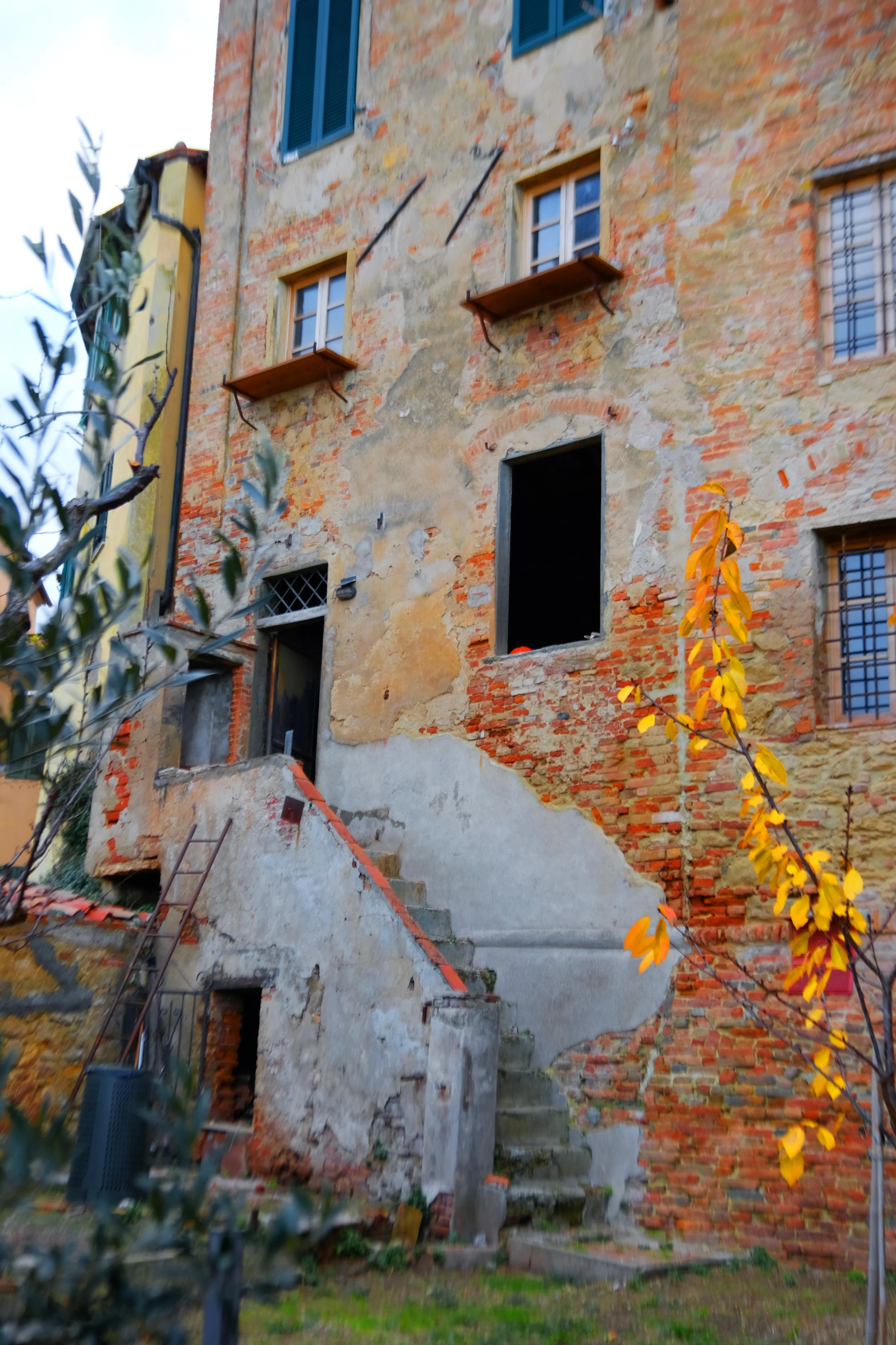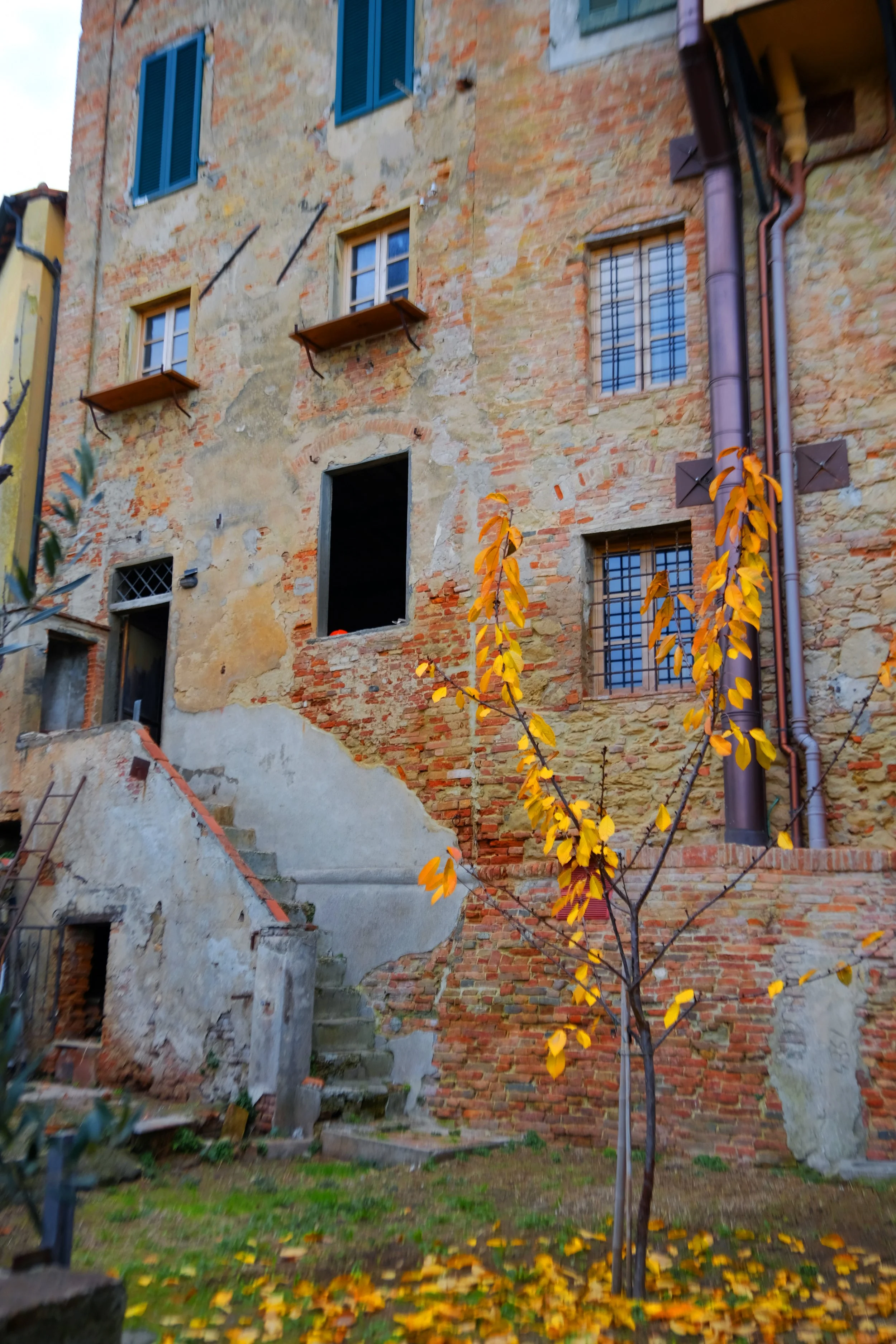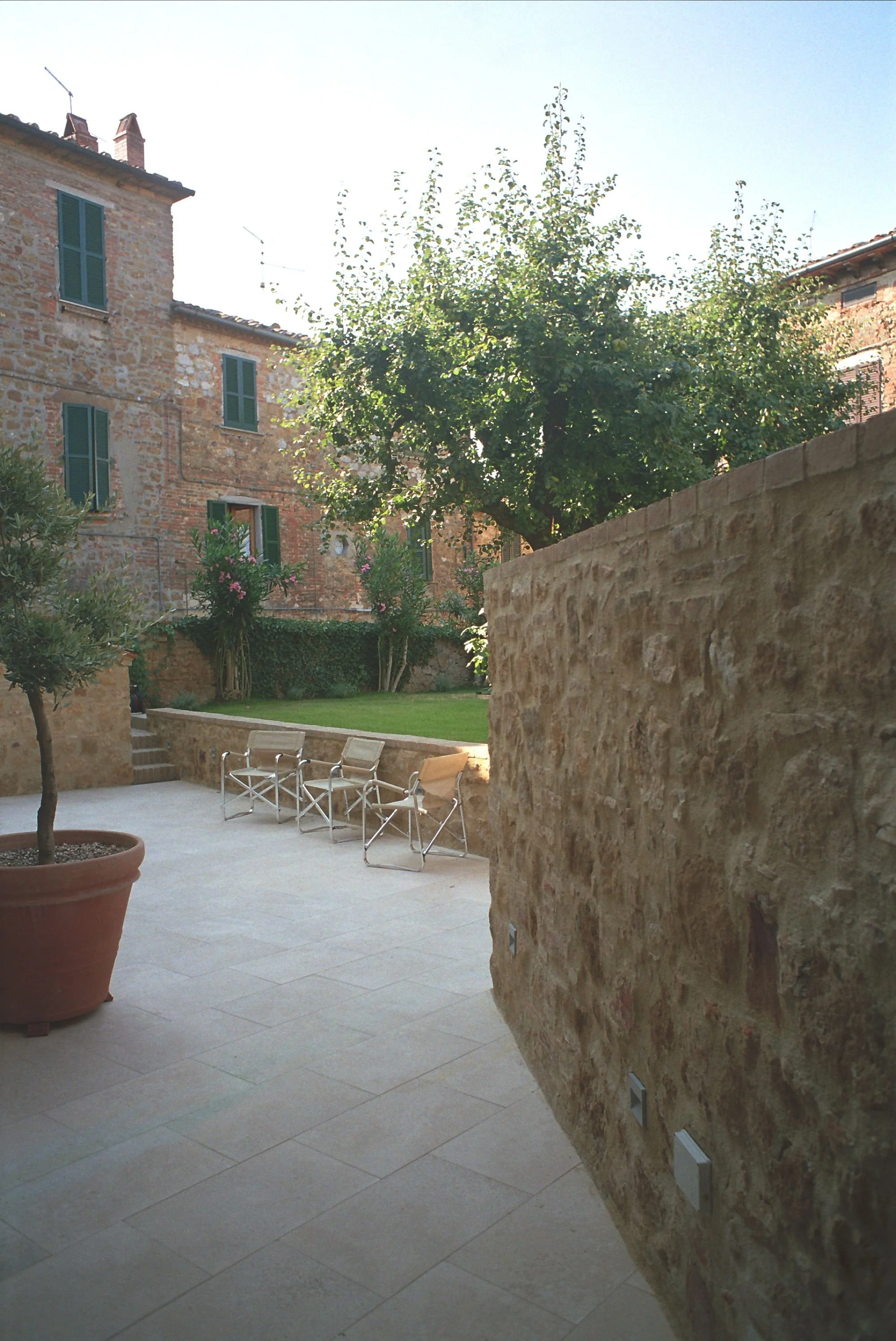 Samme måte som vår eiendom i Lari, så er hagen lagt inn imellom gamle hus.