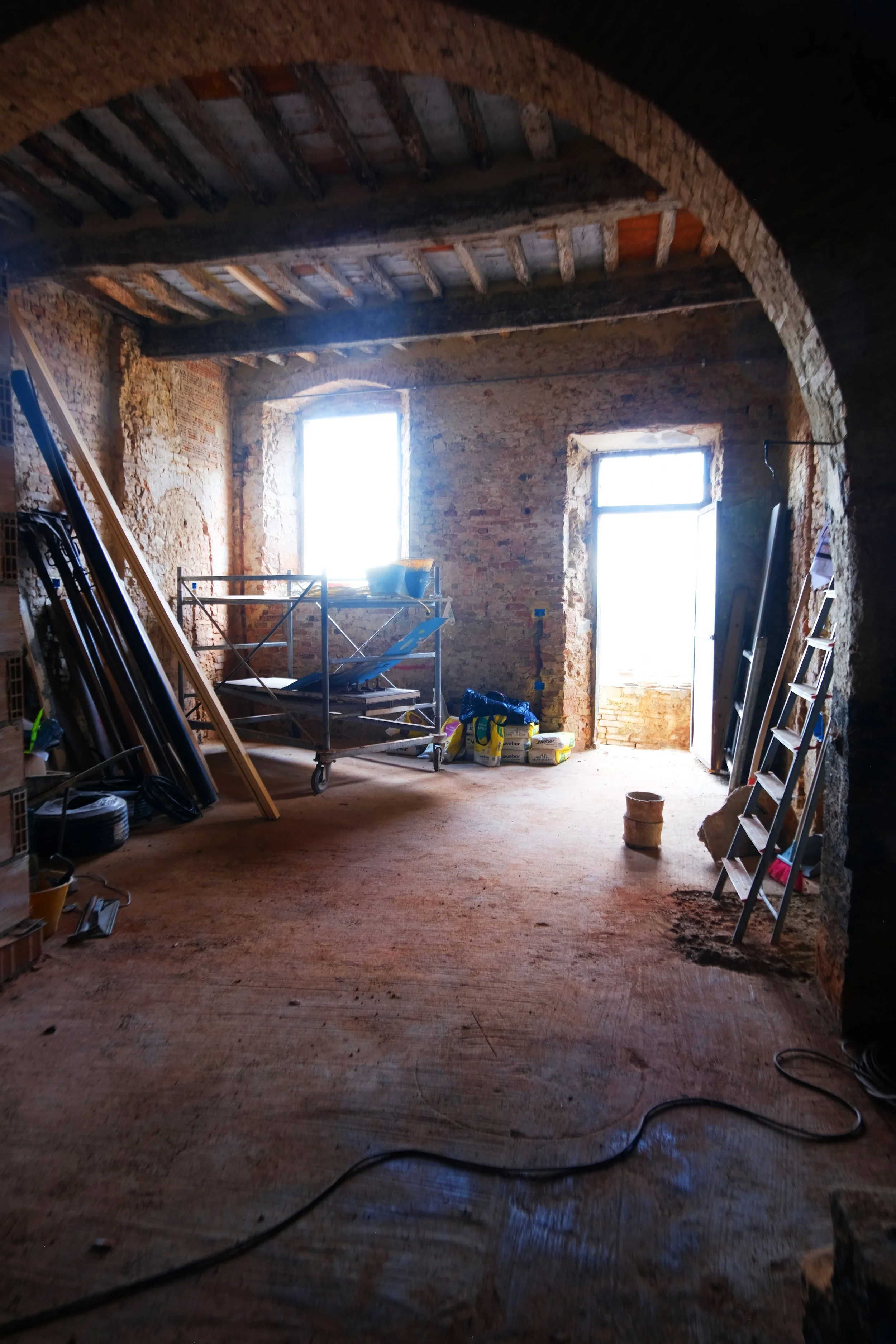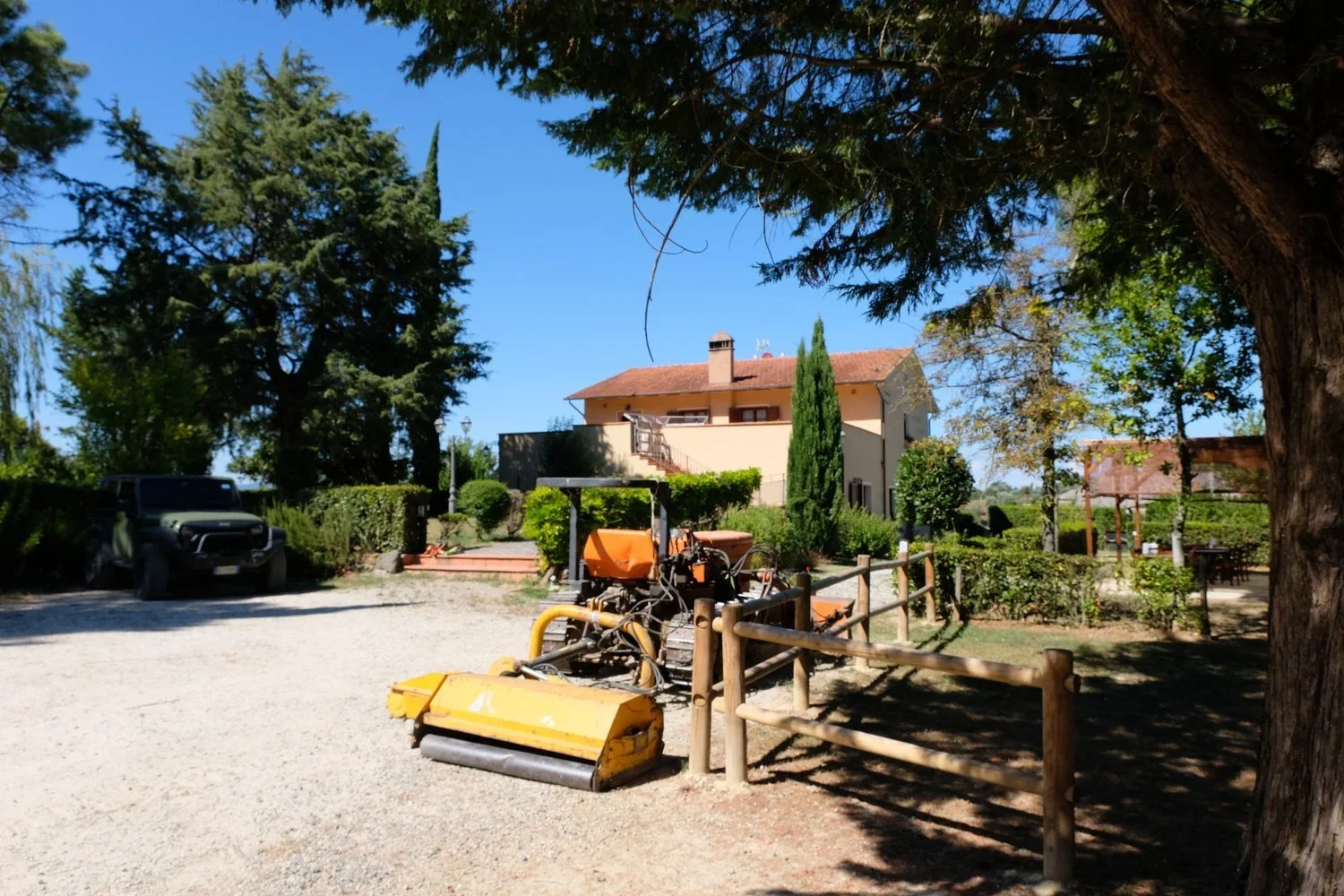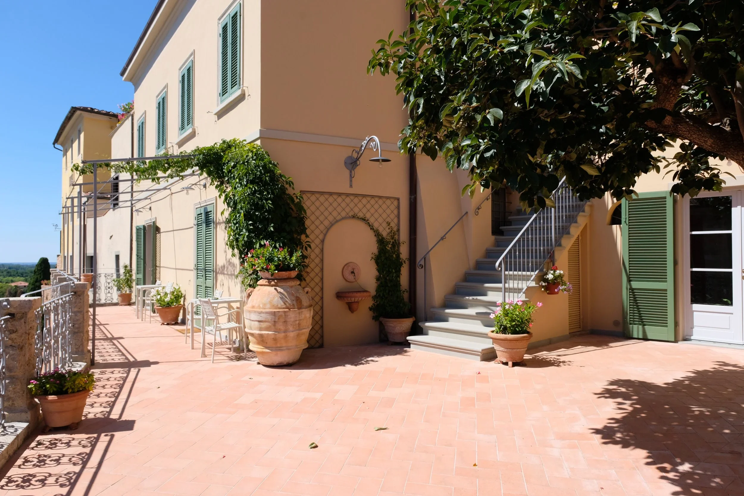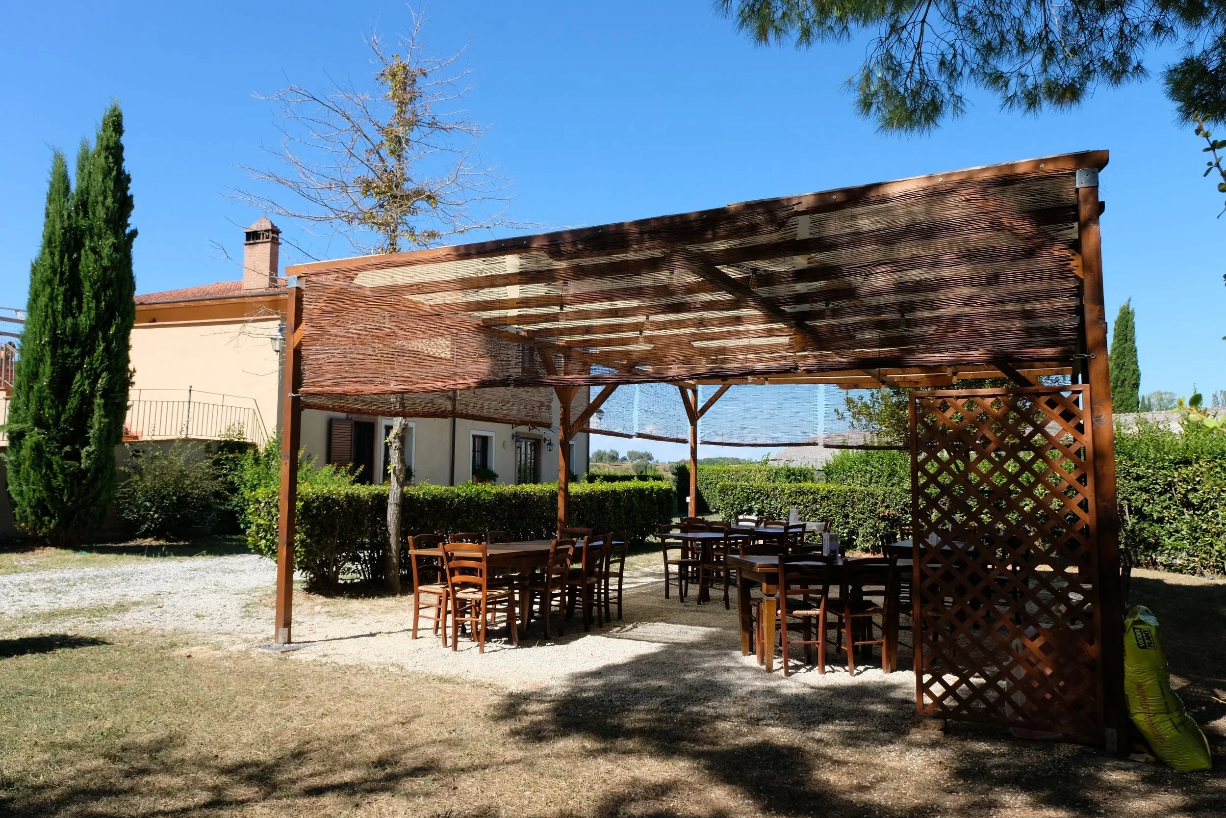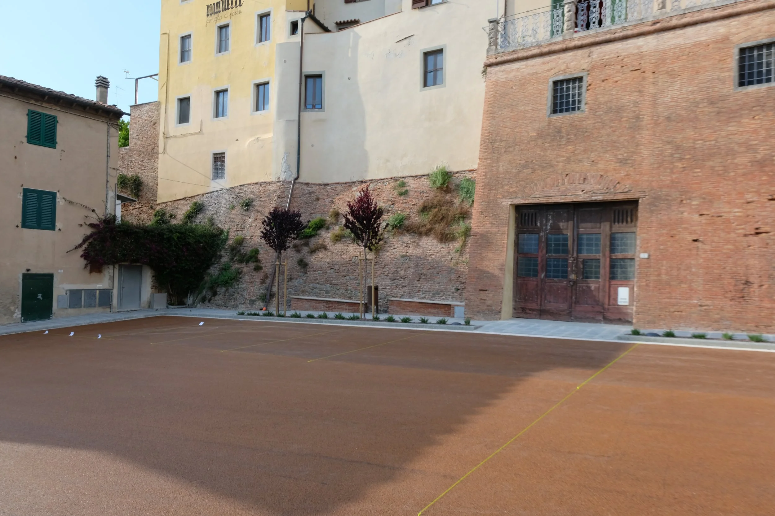 Samme måte som vår eiendom i Lari, så er hagen lagt inn imellom gamle hus.