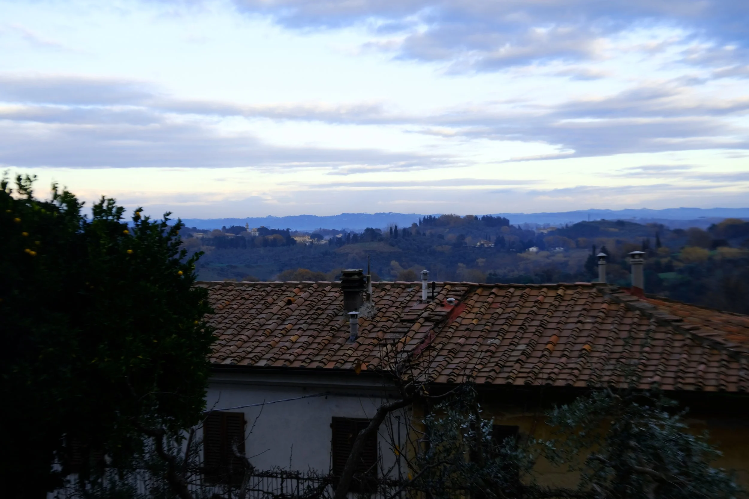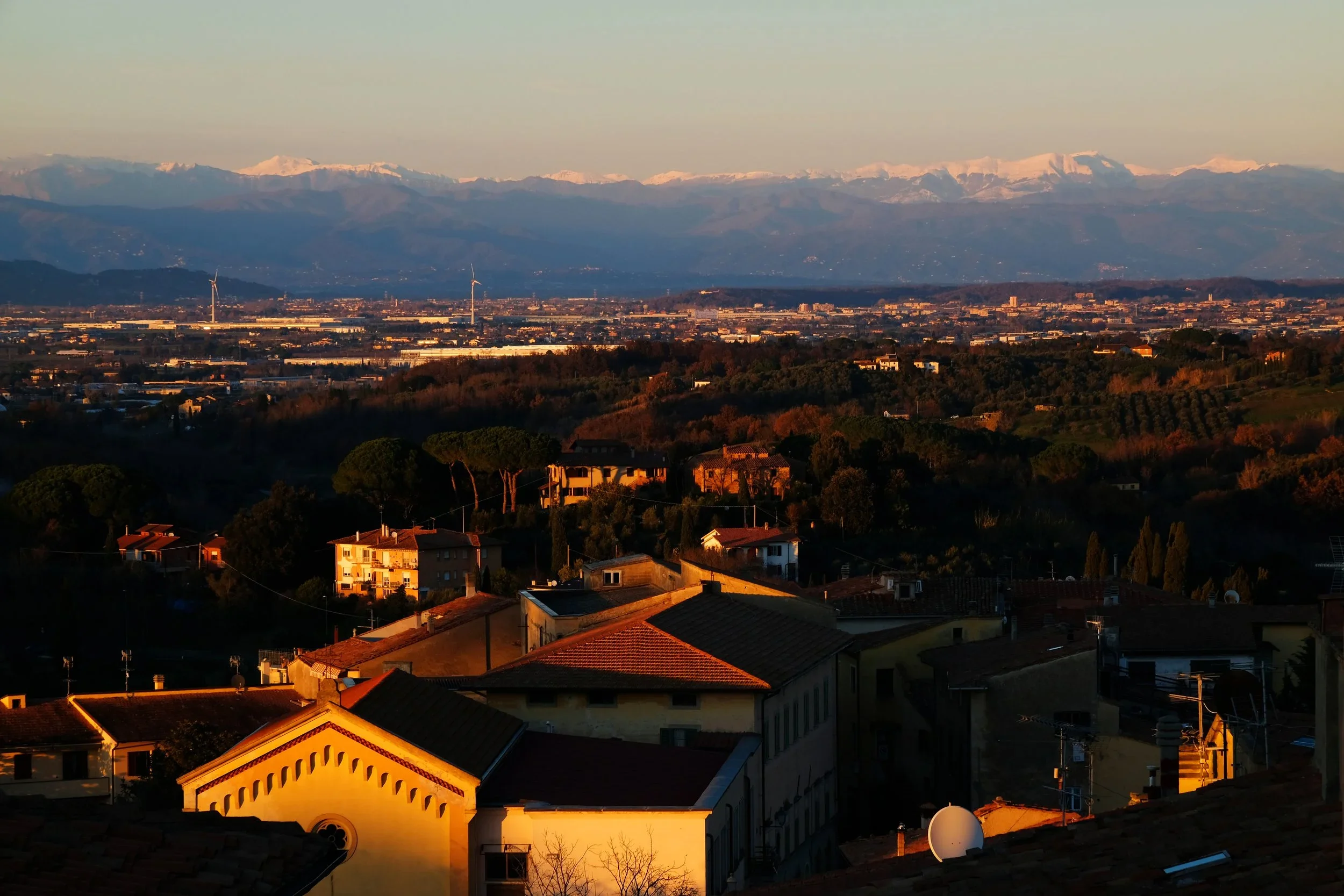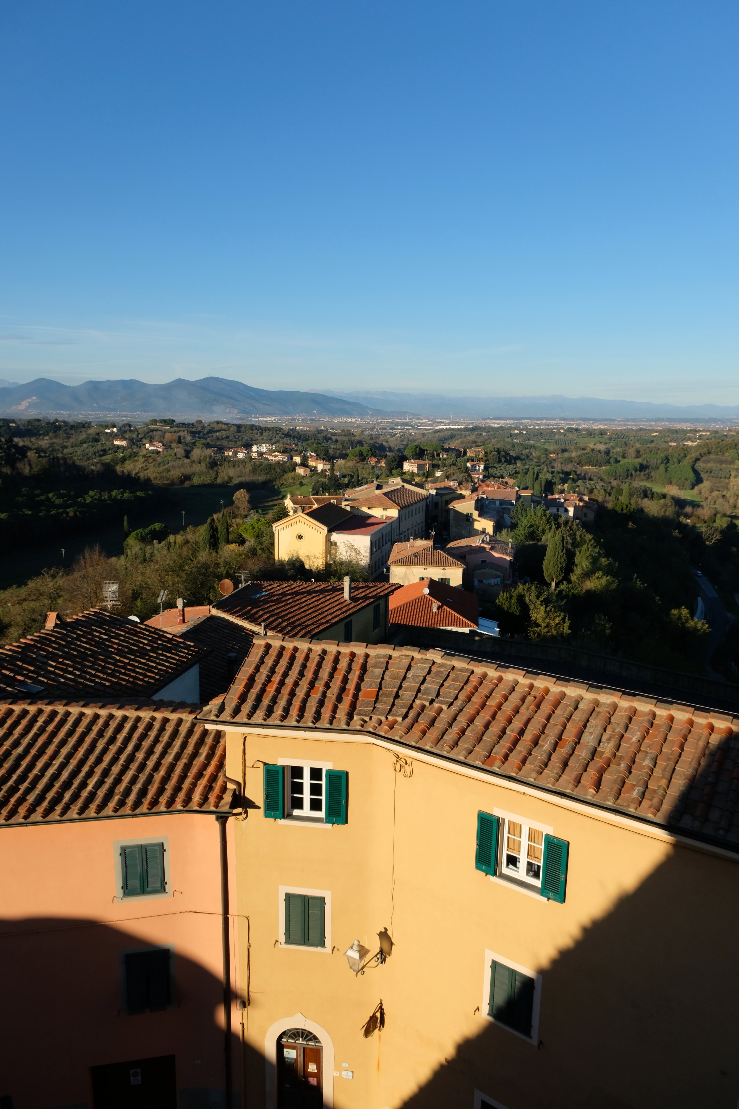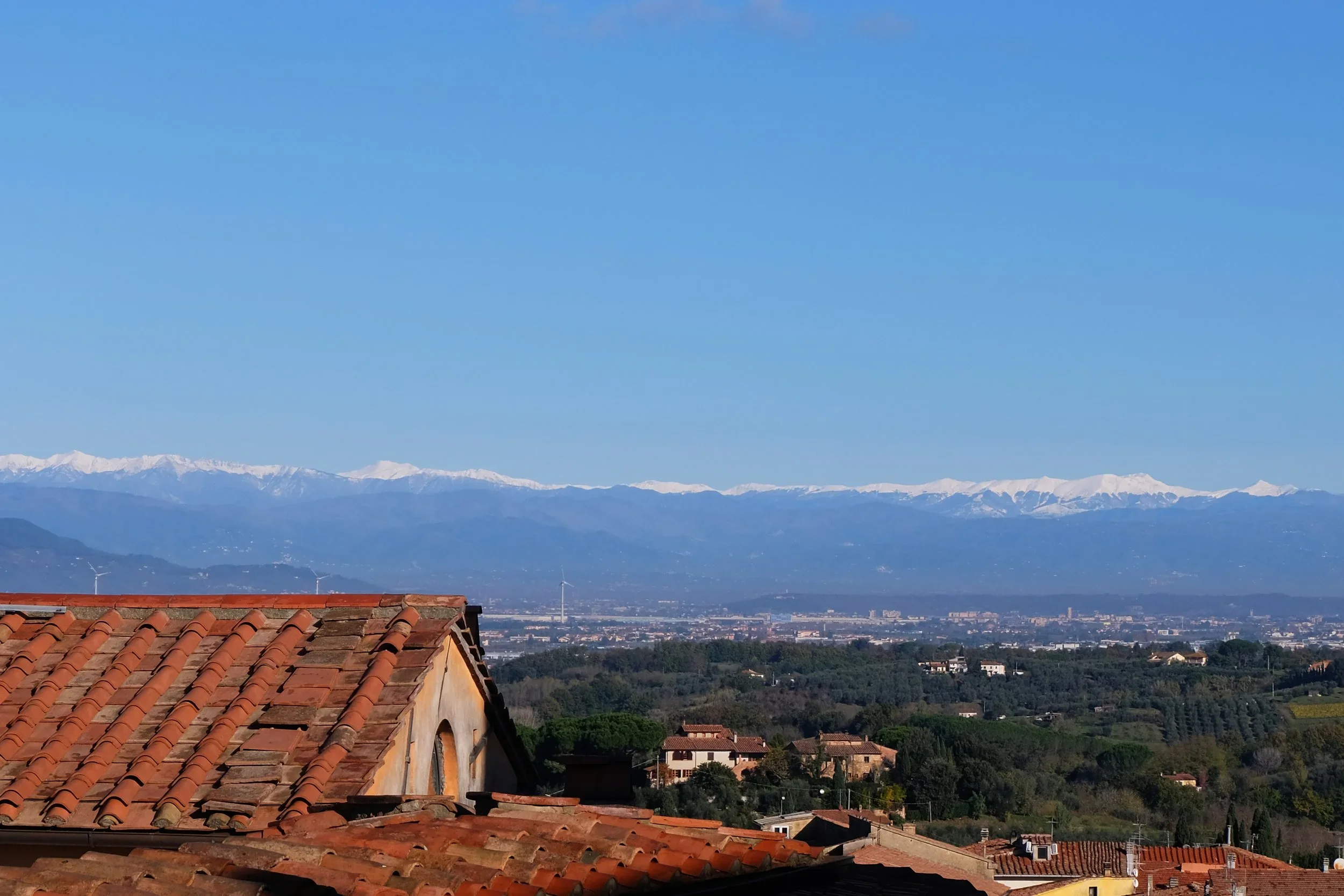 Utsikten fra borgen Lari mot Appenine Pisane og mot Appenine Toscane hvor vi har Abetone skiresort.