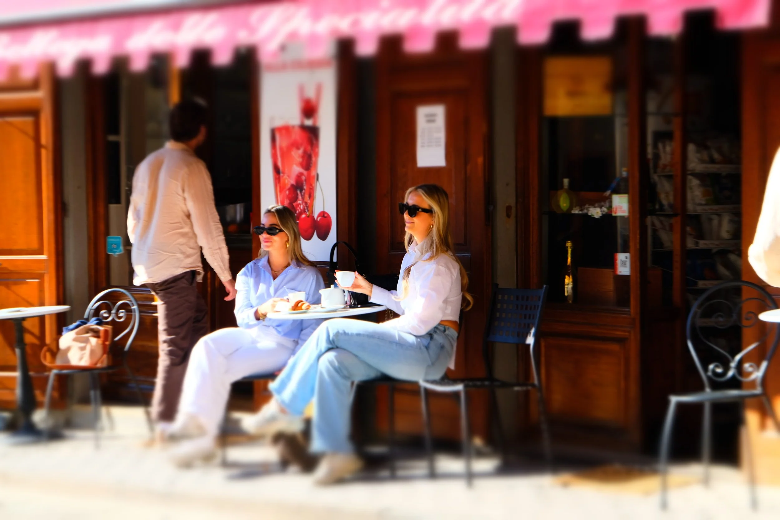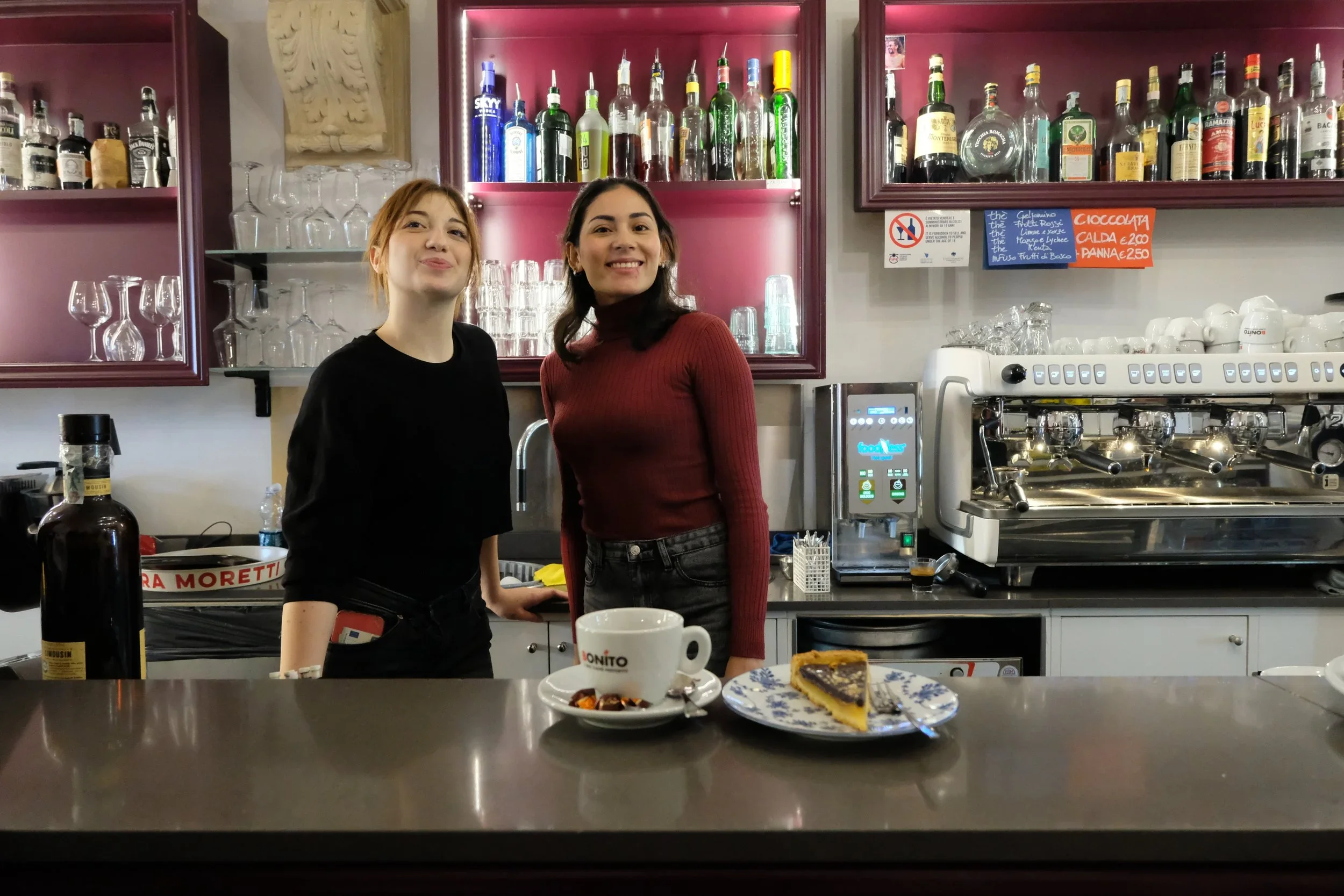 Jenny og hennes kollega på Bar Centrale på piazzaen. Det er et ungt miljø i Lari.