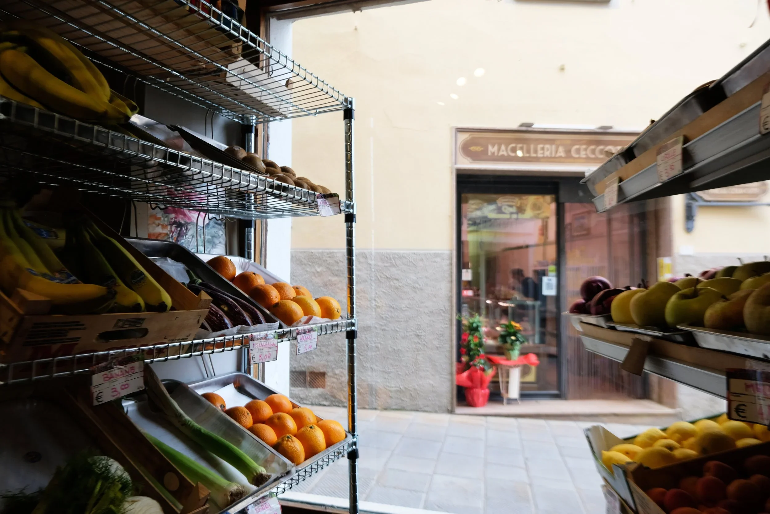 Landhandler Massimiliano Pane Cotto A Legna Alimentari har vi rett rundt hjørnet, og rett over slakteren.