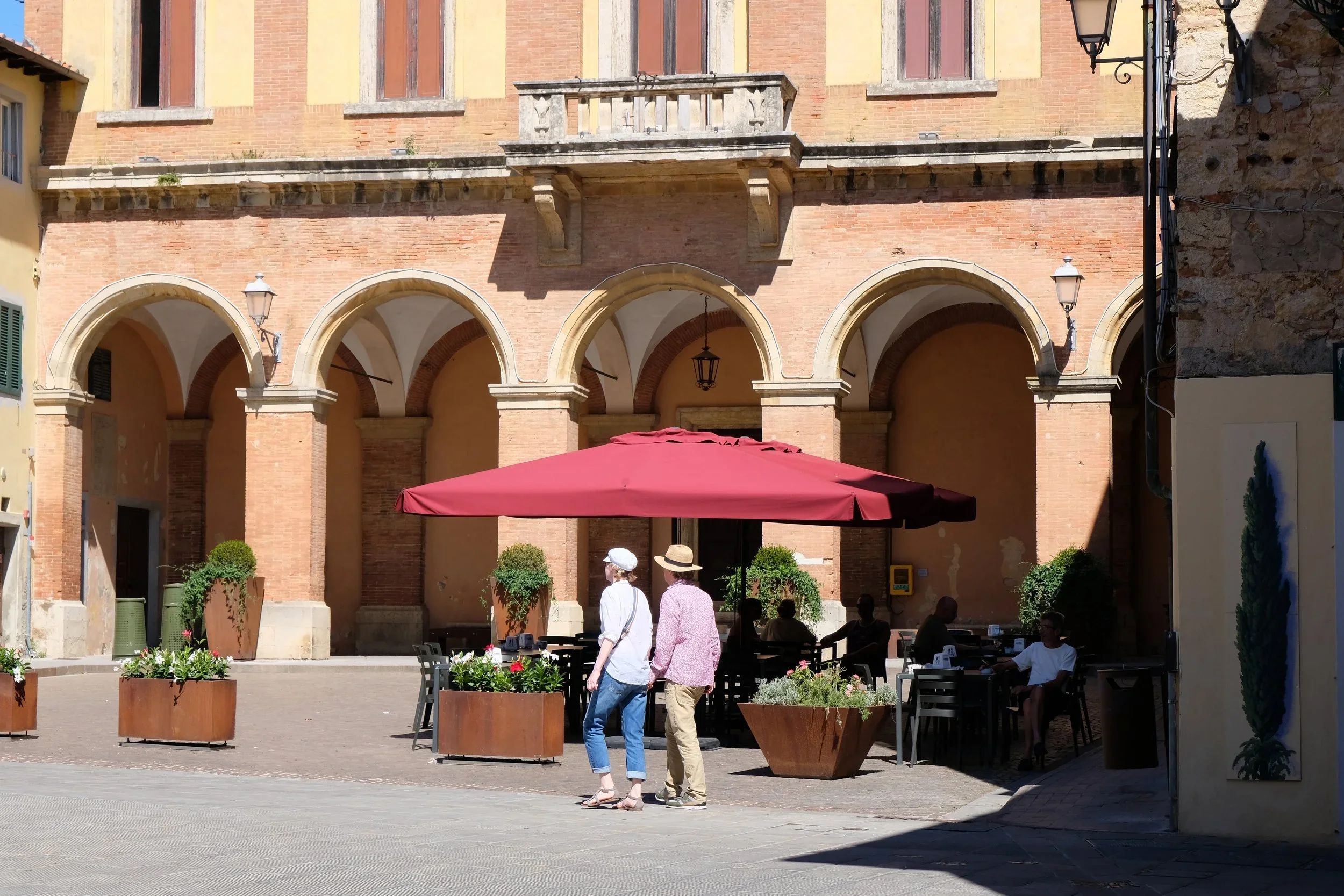 Piazzaen i Lari hvor vi opg har Bar Centrale. Selv på varmeste sommerdager så er det behagelig å sitte her. Dette har noe med vindtuneller, inn i borgen.