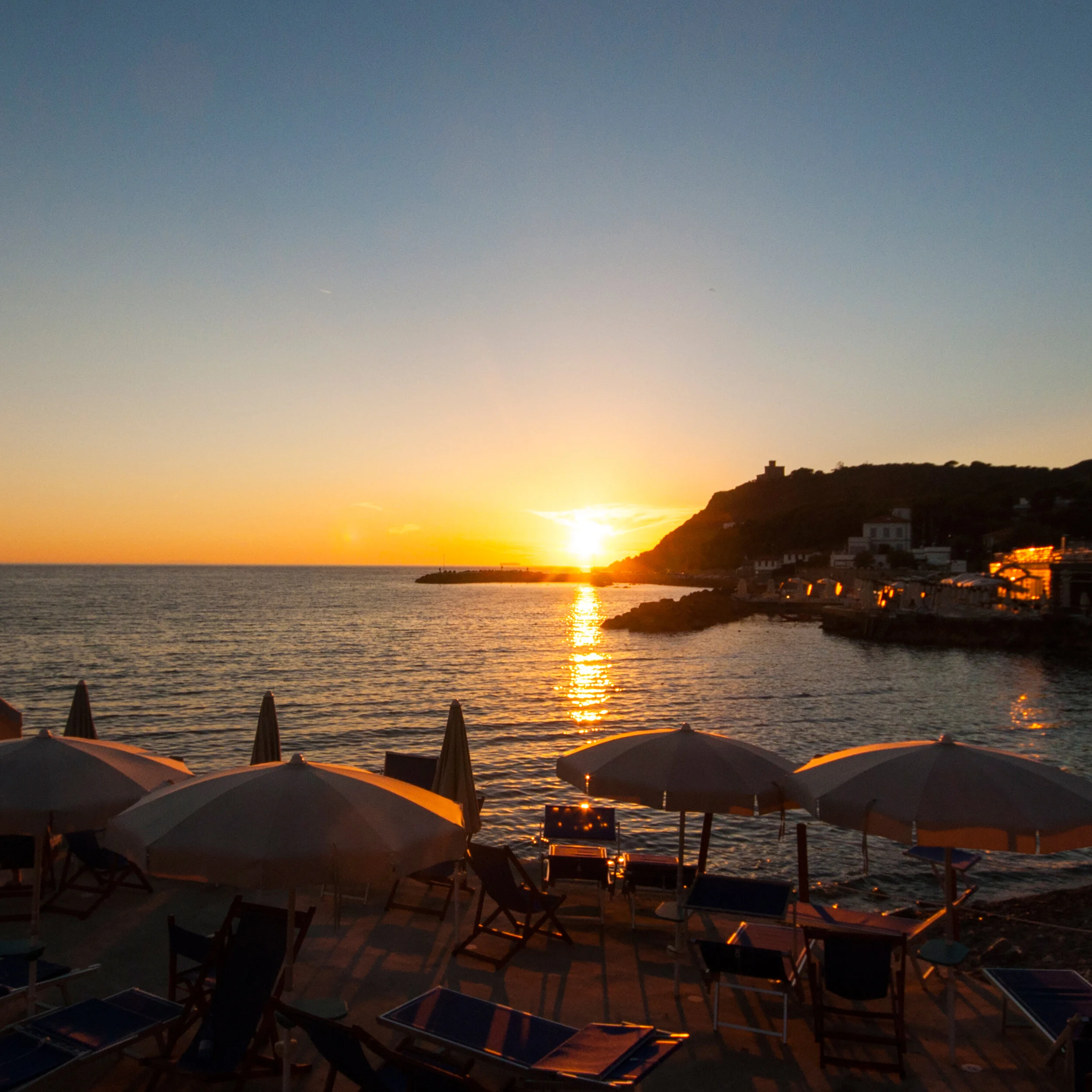 Havutsikt fra terrasse. En kan fra terrasse se til Castiglioncello, og til sjøen i sør og til øya Korsika i vest. Om en bygger terrasse på taket så vil en fra den kunne nyte en fantastisk havutsikt!